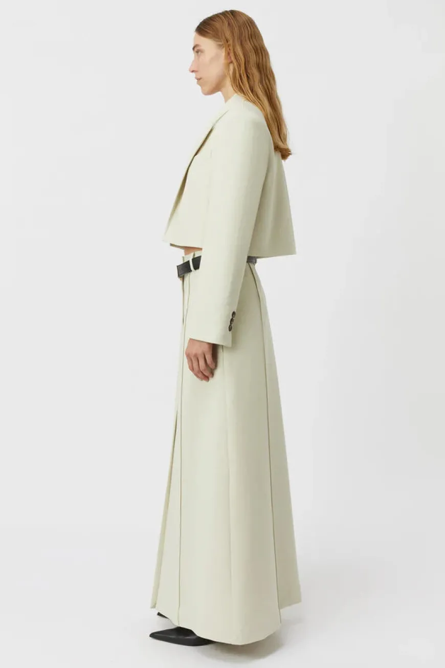 The Adica Maxi Skirt is the perfect addition to any wardrobe, featuring a tailored design in a versatile ecru hue. Sitting comfortably on the hip, this skirt boasts an A-line silhouette and a centre front split, offering a modern twist to a classic style. Perfect for any occasion, the Adica Maxi Skirt effortlessly combines timeless appeal with contemporary flair.