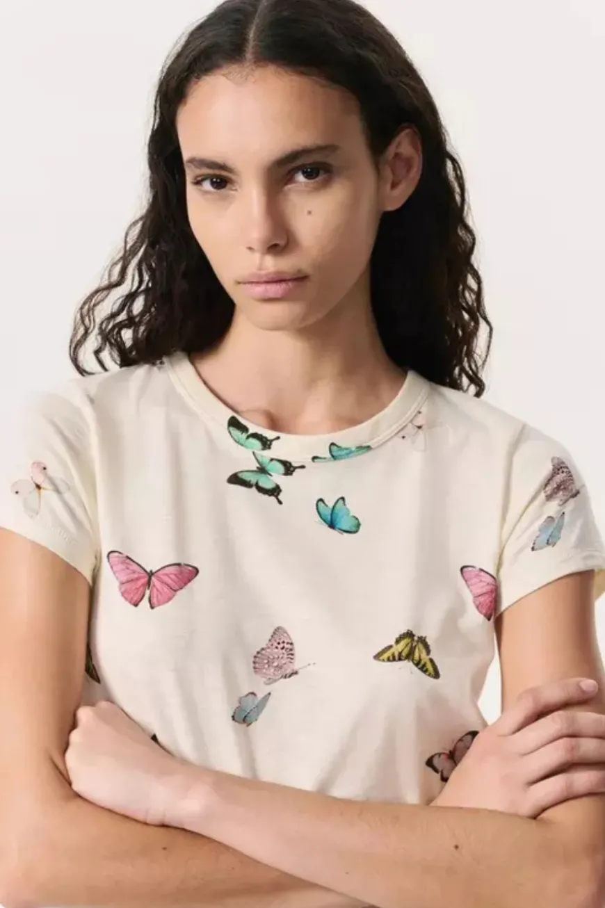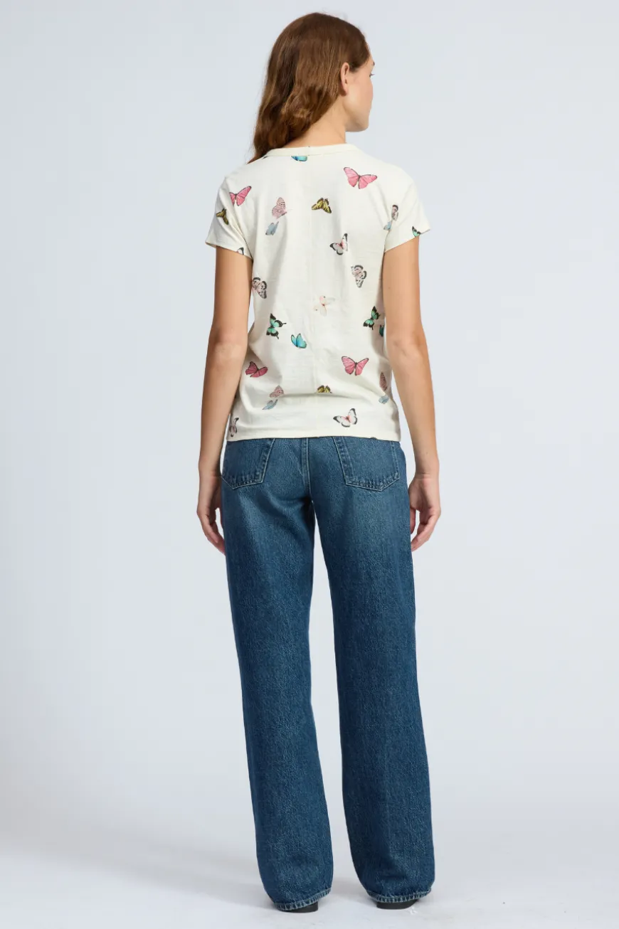 Colorful, digitally printed butterflies flutter across this crewneck T-shirt, which is cut for a classic fit from a Peruvian stretch cotton blend.