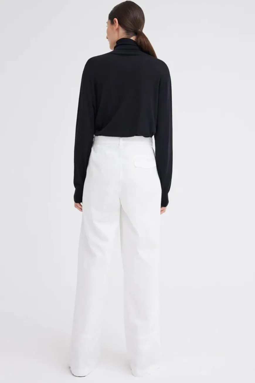 Cool and casual, this slouched wide leg pant will elevate your off duty style with ease. With a high waist and dramatic wide leg this style is cut from a soft density cotton chino in a relaxed fit. We love them styled with new season silks for an elevated approach, or worked back with a favourite tee.