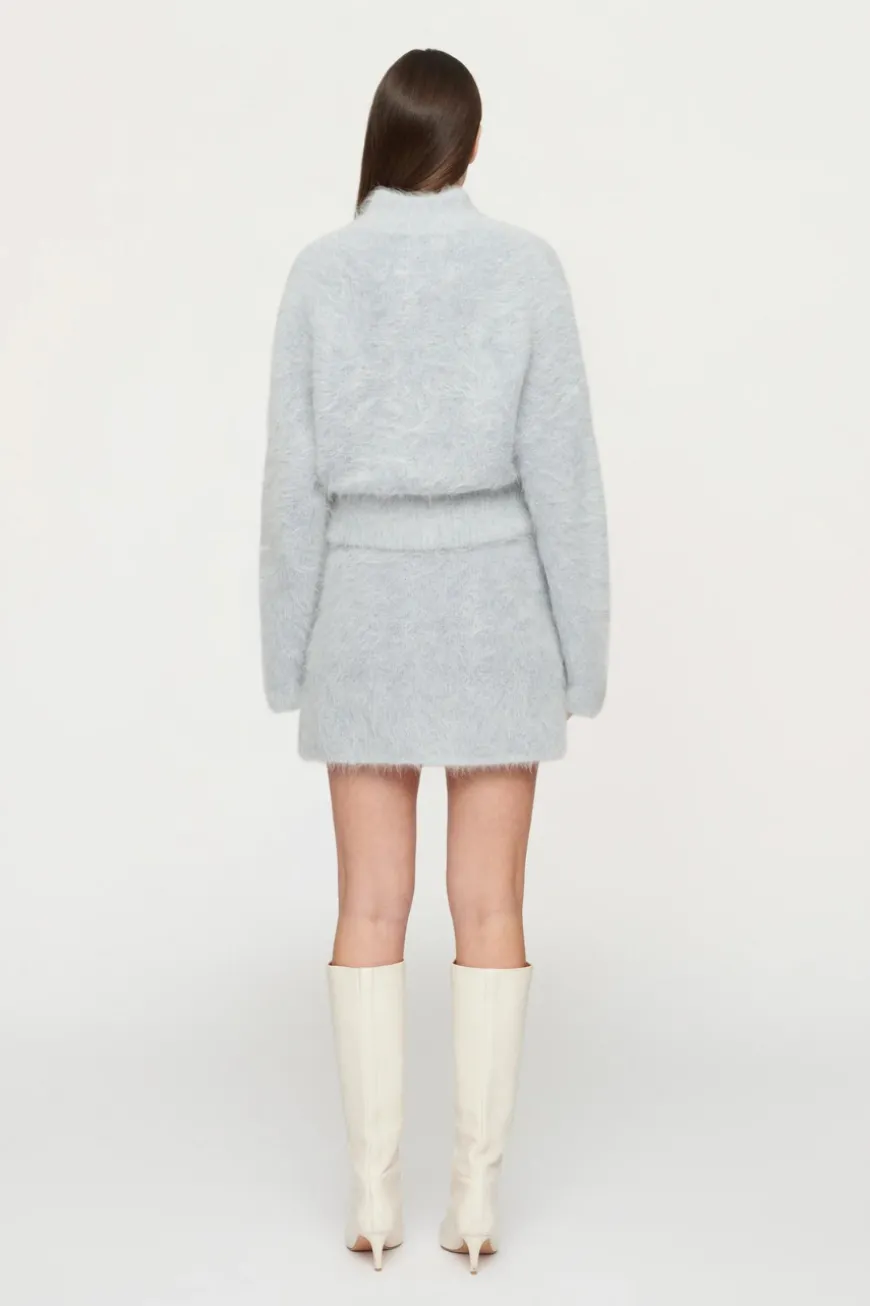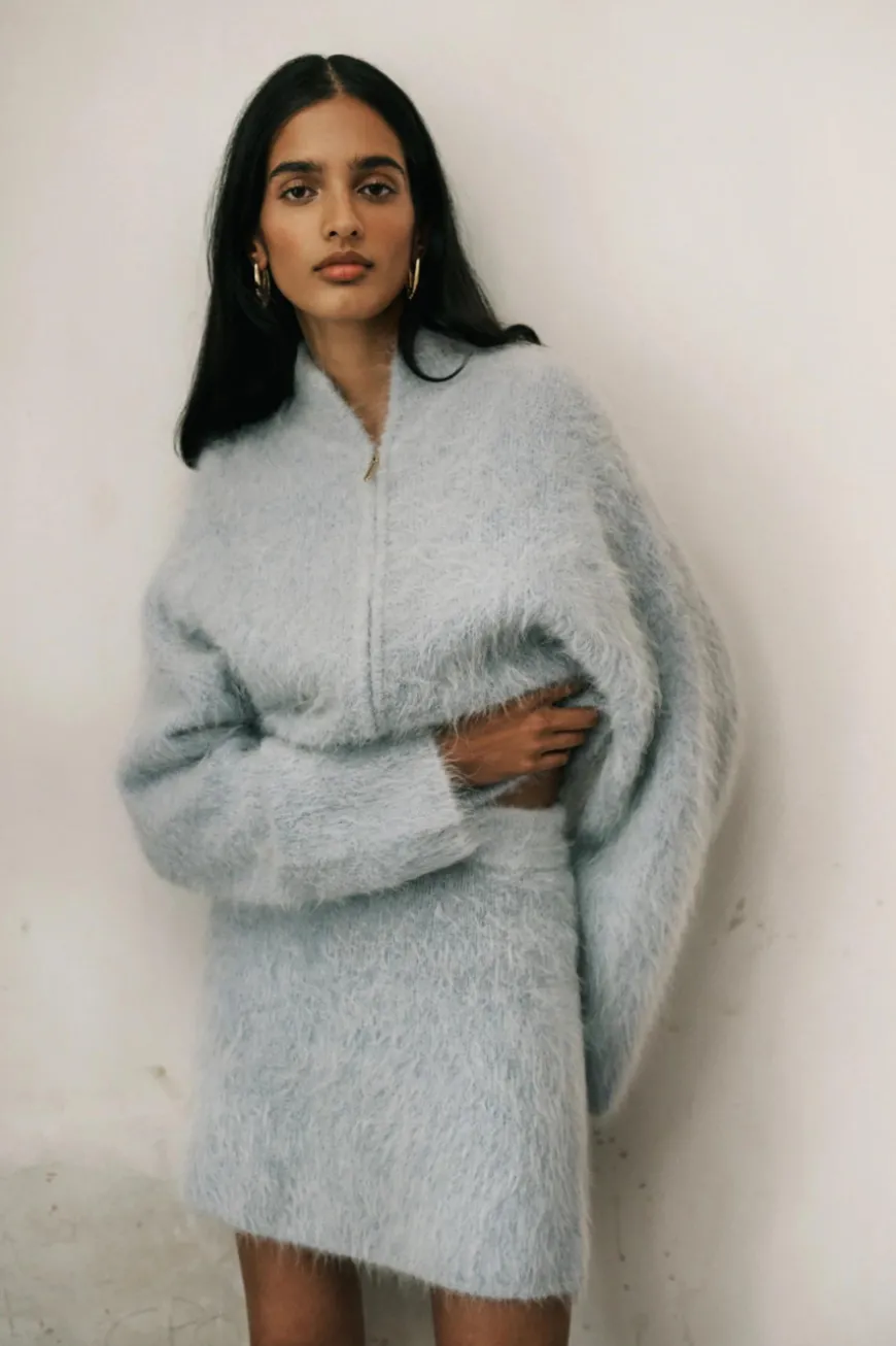 The Archer Fluffy Skirt is a modern knit mini skirt. Beautifully crafted in a soft alpaca blend yarn in a cloud colourway, it has a warm, soft hand feel and a brushed surface texture. Its silhouette is elegantly a-line, complemented by a flawlessly finished cast-off hem and a snug tubular waistband with encased elastic. Elevate your look by pairing it with the Archer Fluffy Bomber for a matching set.