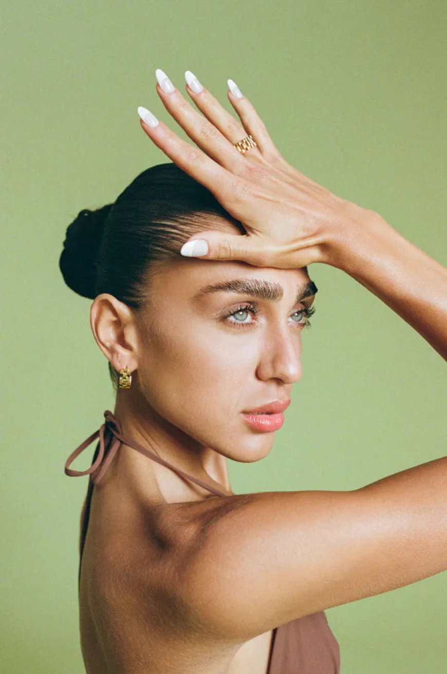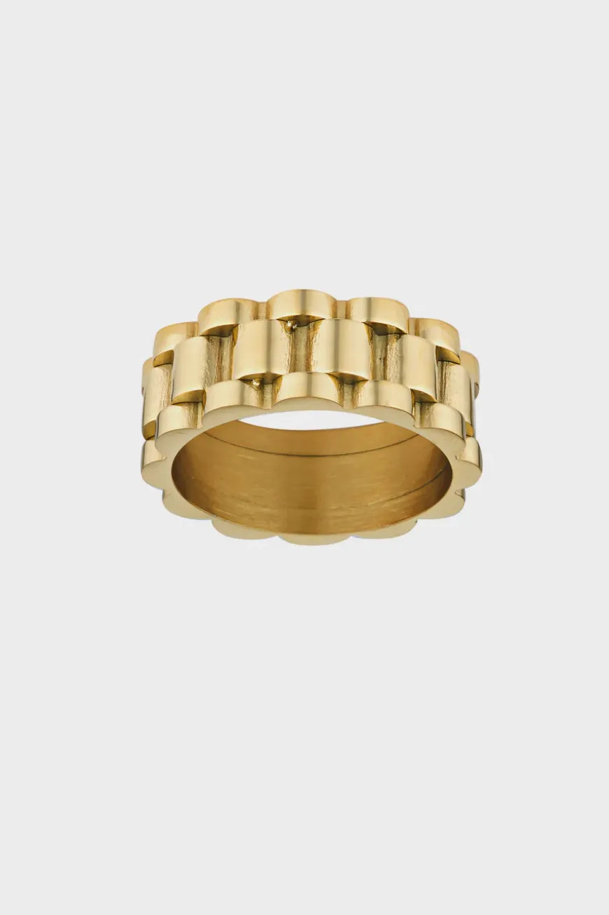 18k gold vermeil with a sterling silver base. All of Porters pieces are water-resistant, will never rust or turn green, and can be worn in the shower.