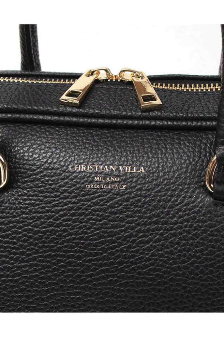Iconic, practical, and casually chic bag. It is made from luxurious hammered leather in black and includes a strap inside, allowing it to be worn crossbody as well.