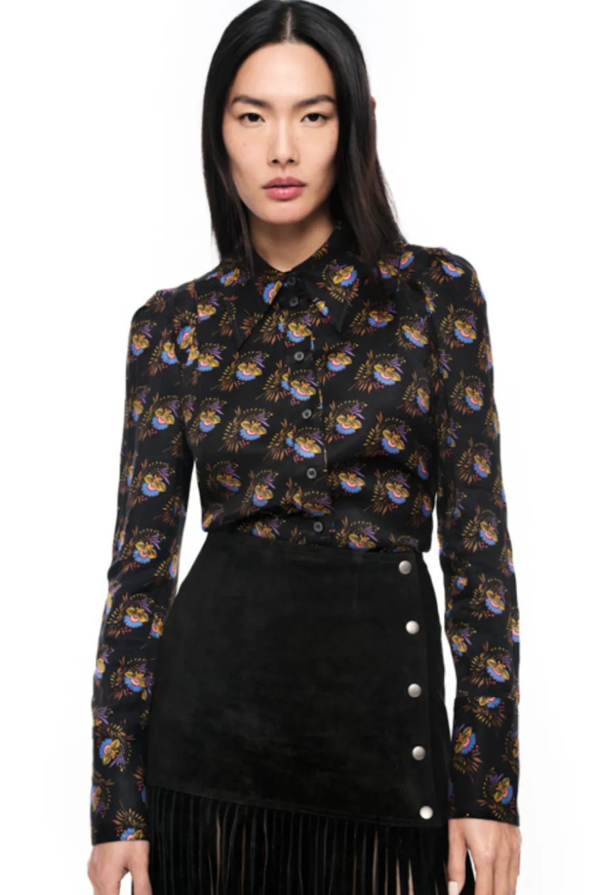 The Box Pleat Shirt by Smythe is designed in a sleek black hue with an intricate floral print that adds intrigue to your ensemble. Crafted with a boxy fit and refined details, this shirt combines style and sophistication. Pair yours with tailored pants or a midi skirt.