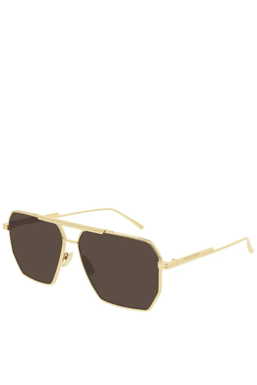 Full metal and super light masculine contemporary caravan shape defined by metal temples embellished by the new iconic fringed ribbon detail. Bottega Veneta logo the external side of temples. Anti slipping details on the internal part of the endtips. Color palette well balanced between matte and shiny metals.