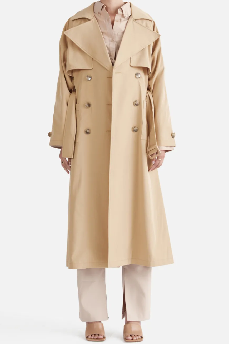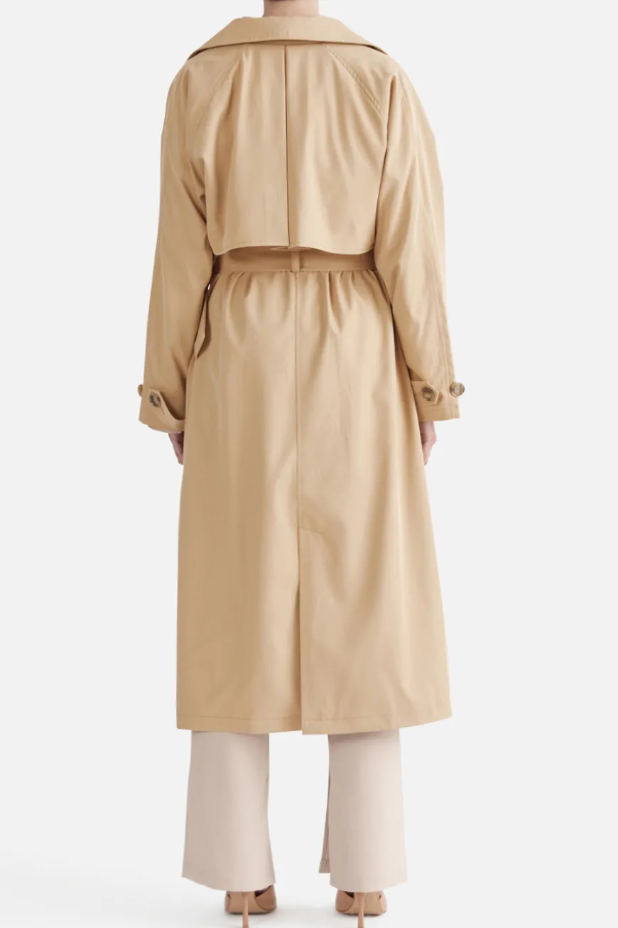 The Carrie Trench Coat has been designed as an effortless outwear staple. This elevated style features and oversized lapel and collar, front twin storm flaps and pleated back storm flaps.