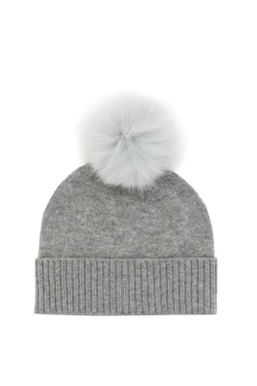 Cashmere beanie with Fox fur pom pom.