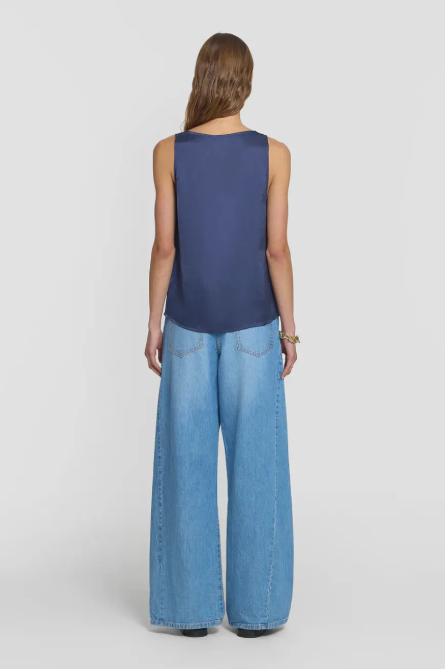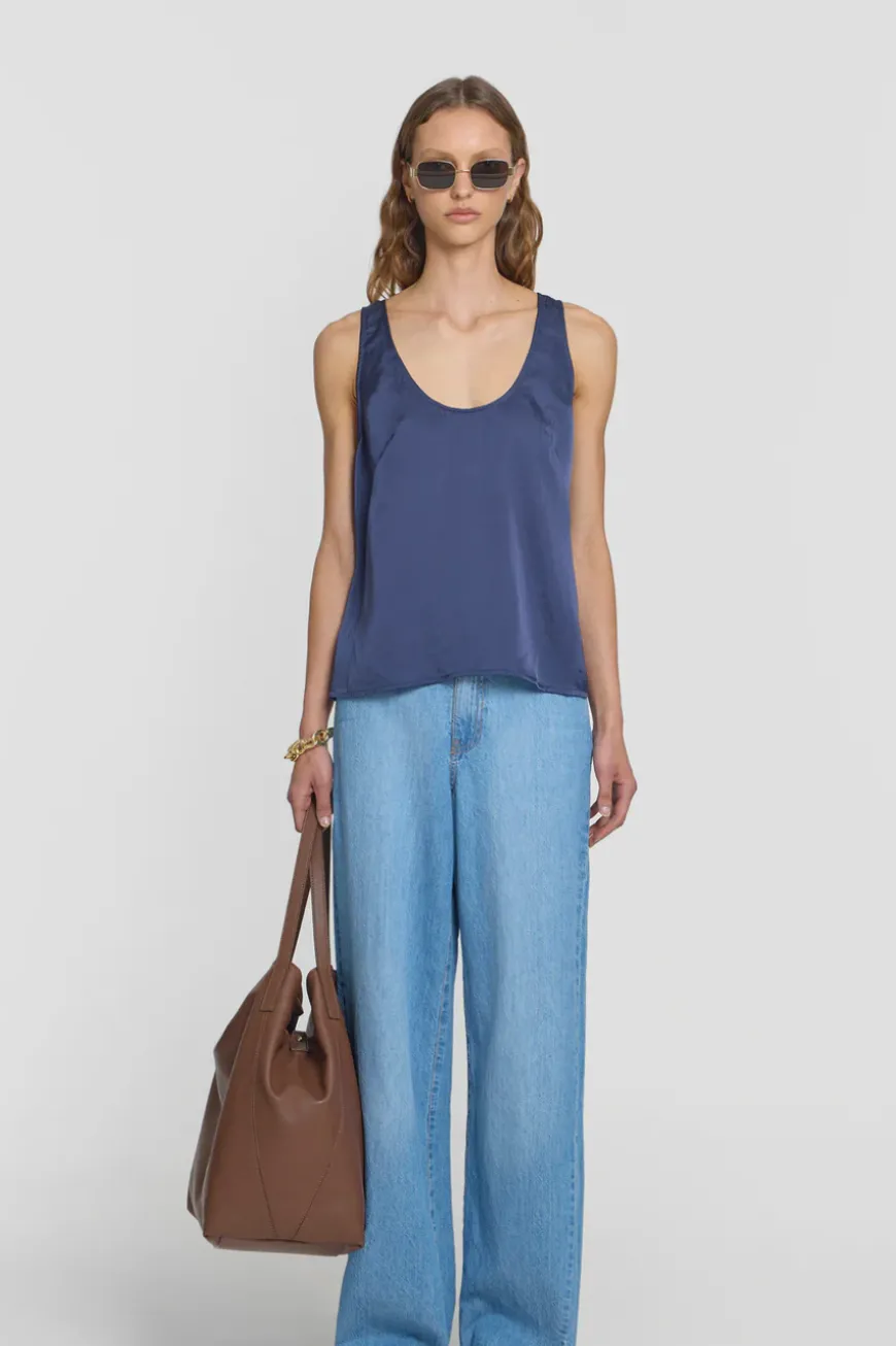 Introducing the Cassio Tank, a sophisticated essential for your wardrobe. Crafted from lightweight cupro in Midnight Navy, this scoop neckline tank features a self-bind finish on all hems and is bra-friendly. Designed as a versatile layering piece and an elevated staple, it effortlessly embodies timeless elegance for any occasion.