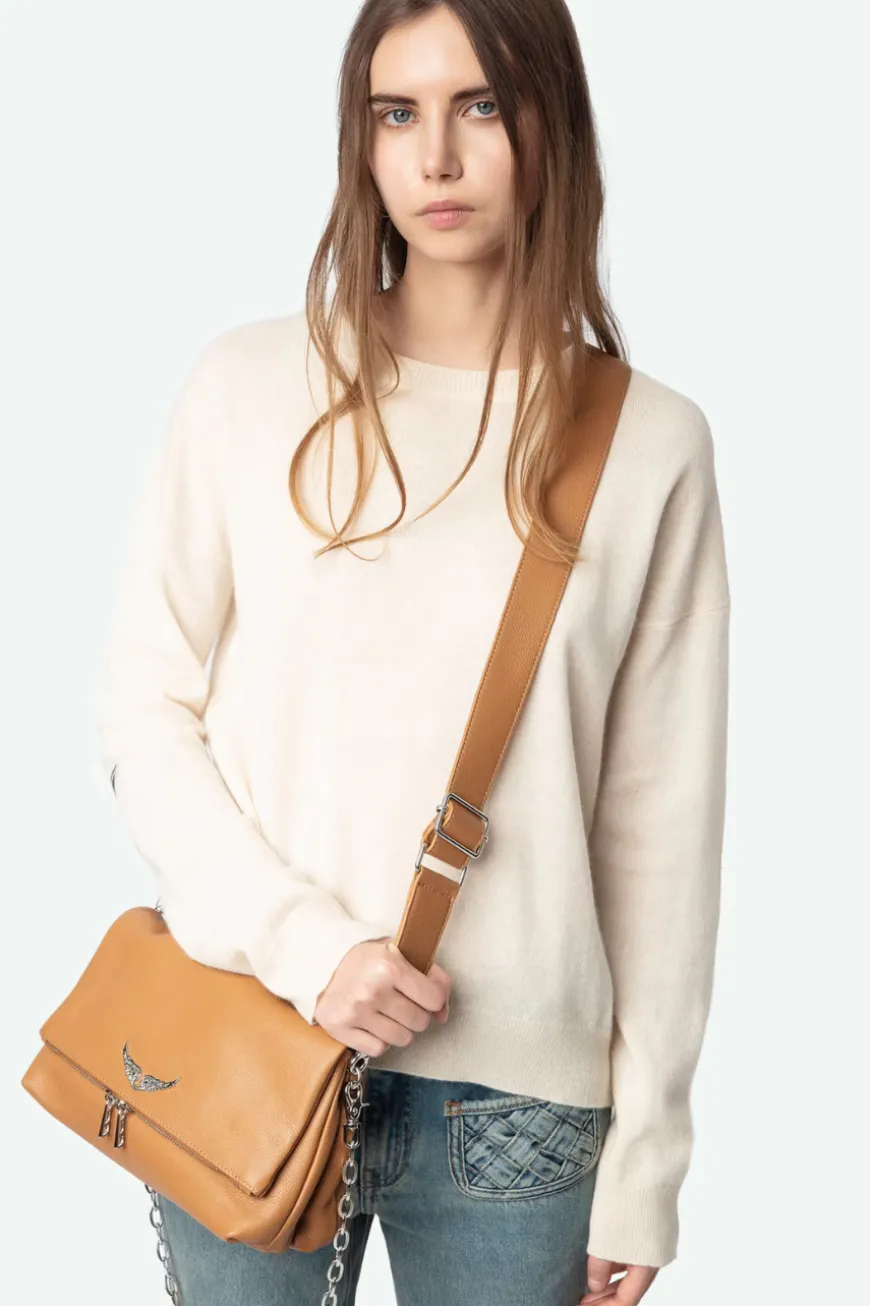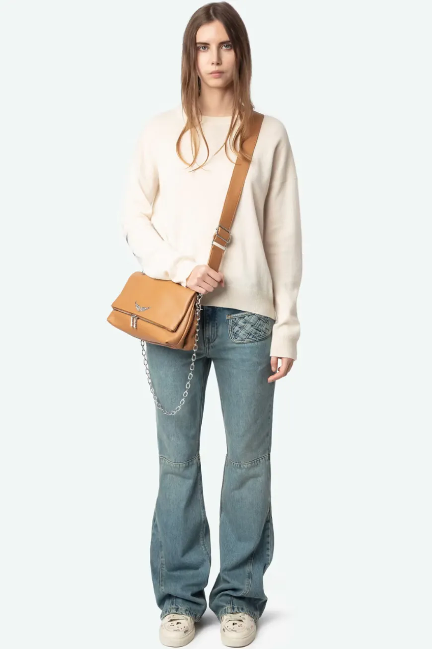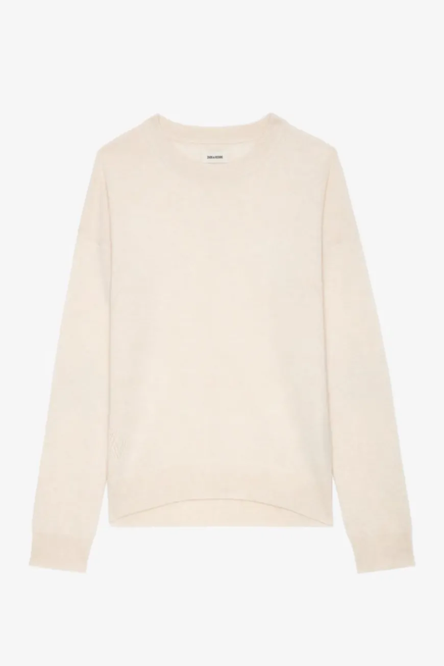 Long-sleeved cashmere crew neck jumper with star patches on the elbows.