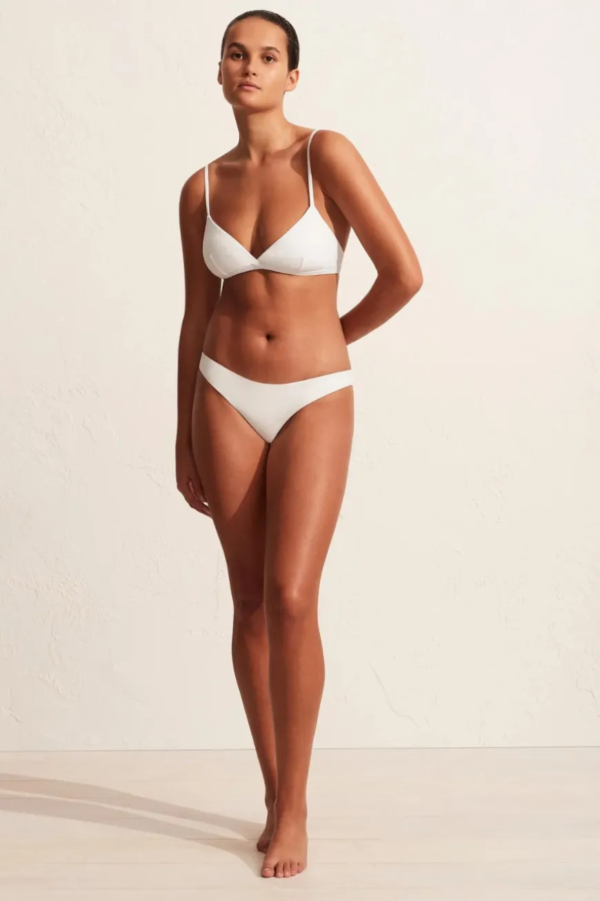 Sanne is 175cm and wears the Classic Brief in Chalk Crinkle in a size 2.