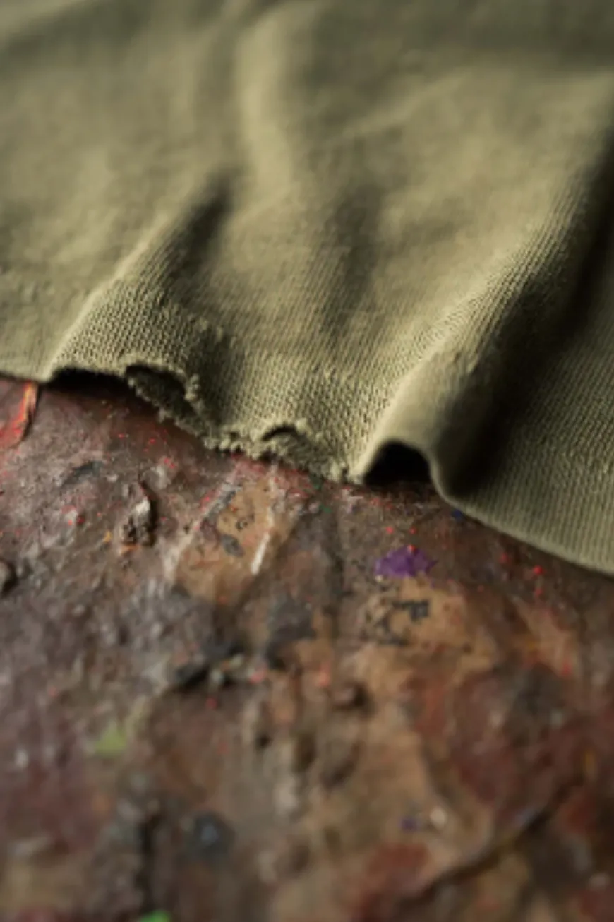 This garment is cut, sewn, distressed, and finished entirely by hand in los angeles, california. Due to this process, every piece is unique and completely one of a kind.