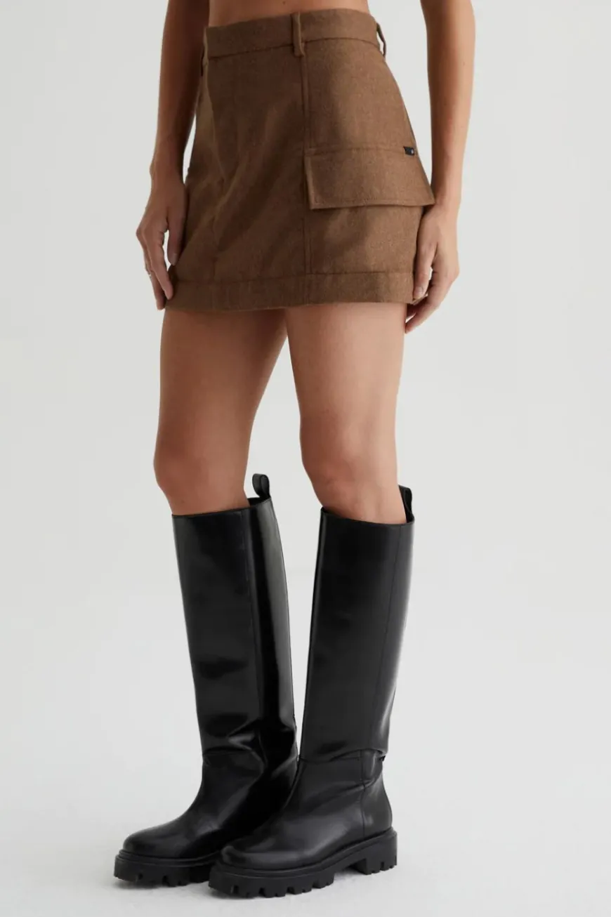 The EmRata x AG Colombo Skirt is a cargo mini skirt evoking utility and femininity. Made from structured melange wool twill in a classic taupe shade for a sleek neutral classic. The paneled side pockets and easy fit offer dynamic ways of styling. Complete with a zip fly, hook-and-bar closure, and lining for refined detailing. The EmRata x AG capsule pays homage to style icon, Emily Ratajkowski. Lending her design input, the assortment captures Emily’s versatile style with a collection of easily-pairing and fashionable pieces.