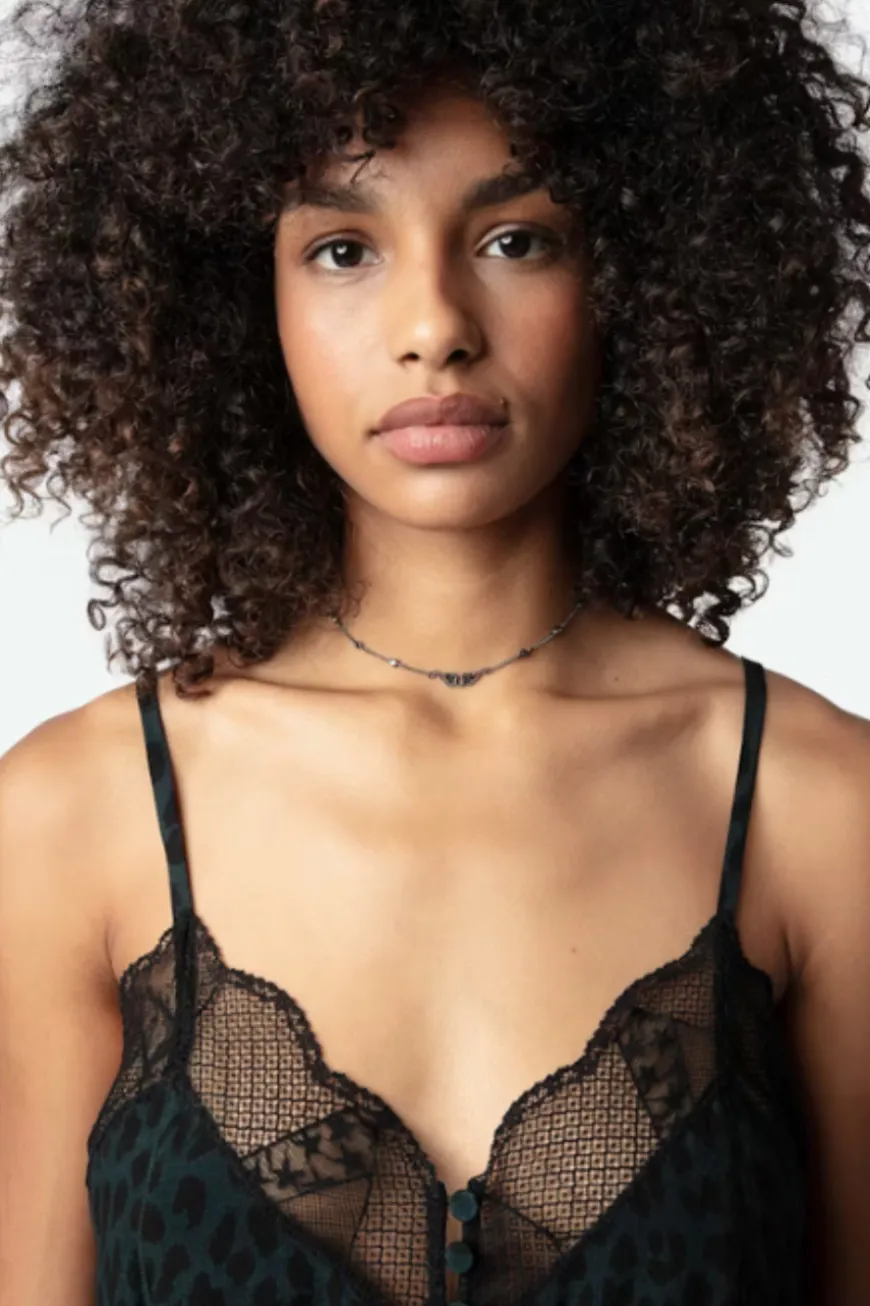– Leopard print and lace strips