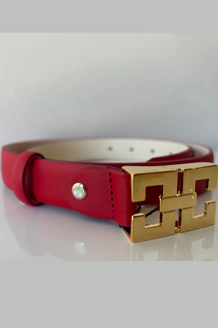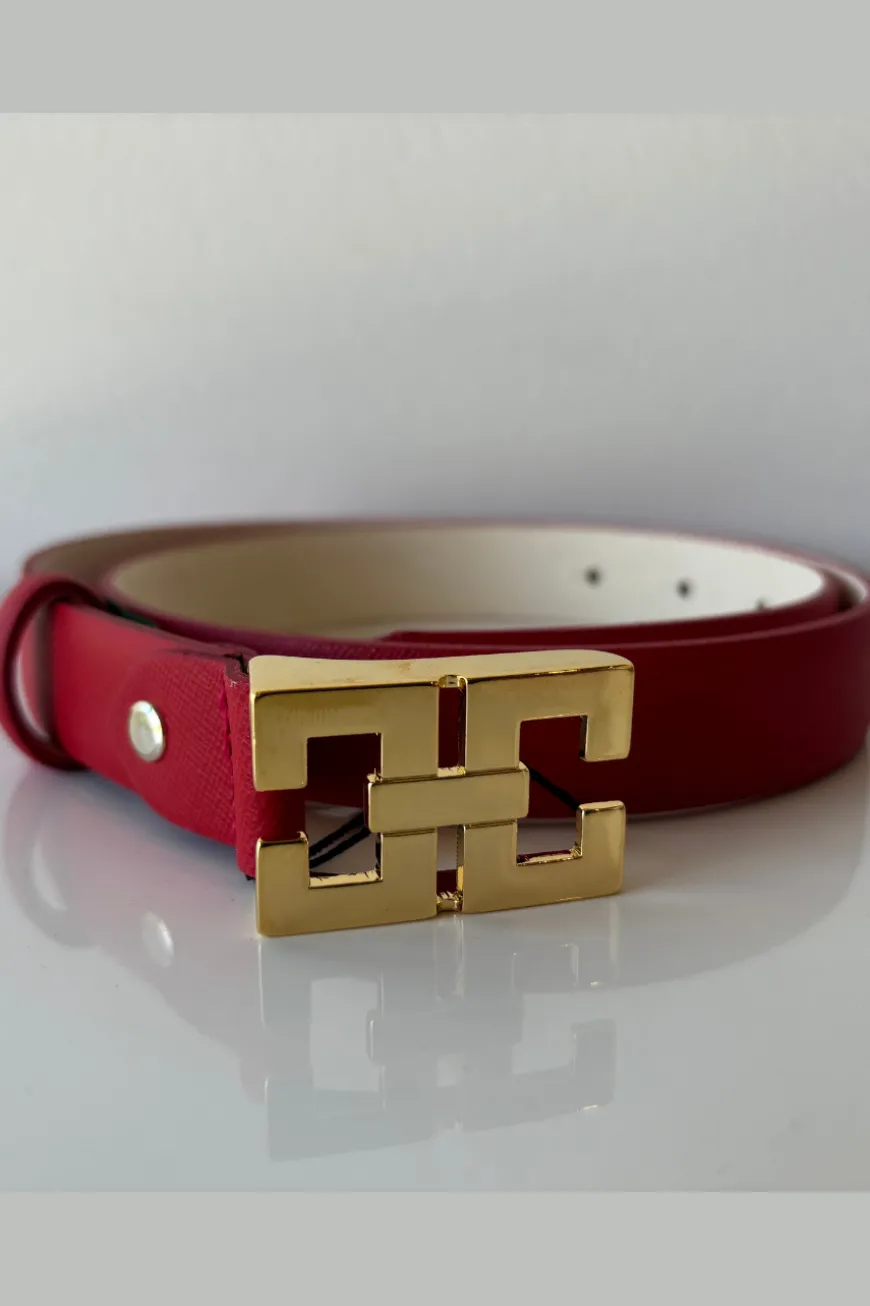 Crafted from supple leather, the exclusive Debbie Belt will instantly add some polish to your outfit. Featuring buckle fastening, interlocking gold detail and an adjustable fit