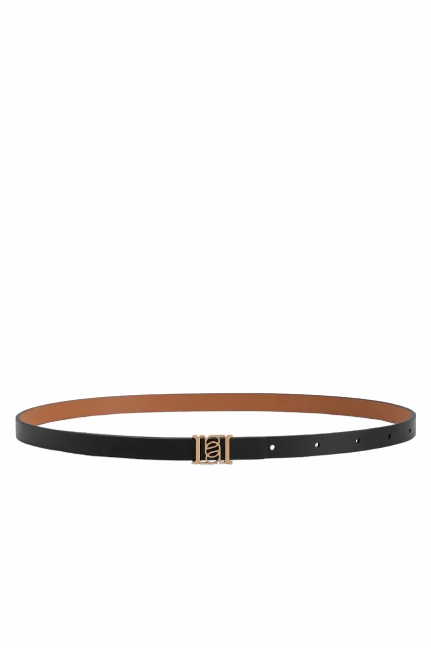 Double-sided belt in smooth calfskin with an ANNALOCH monogram gold buckle. 1.5cm width, adjustable in 5 steps