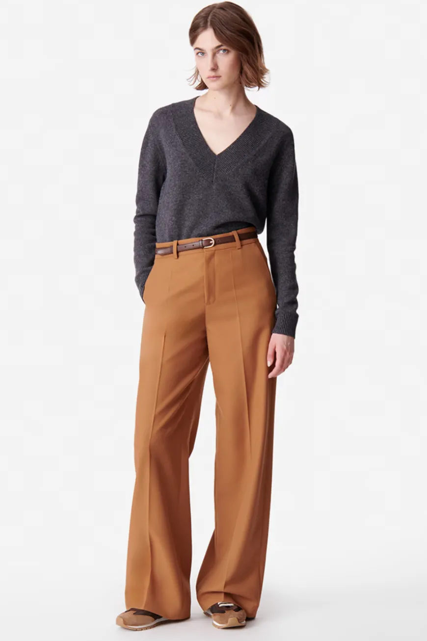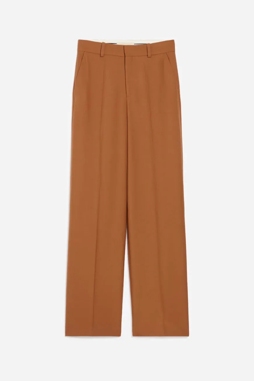 The straight-cut, high-waisted Dulce pant blends the sophisticated, tailored look of a suit with the comfort of a wide-leg pant, ideal for both work and weekend wear. Caramel-colored, these pants take up the codes of tailoring with a straight, elegant silhouette thanks to their pretty pleats at the front.