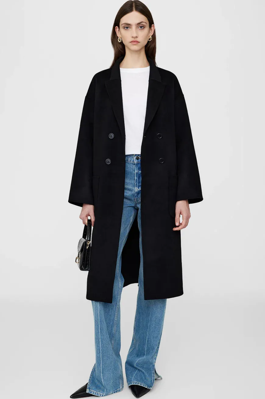 A timeless wardrobe staple that is both practical and luxurious. The Dylan Coat is made from a soft, double-faced wool-cashmere heavyweight fabrication finished with traditional tailored details like a double-breasted closure and functional patch pockets.