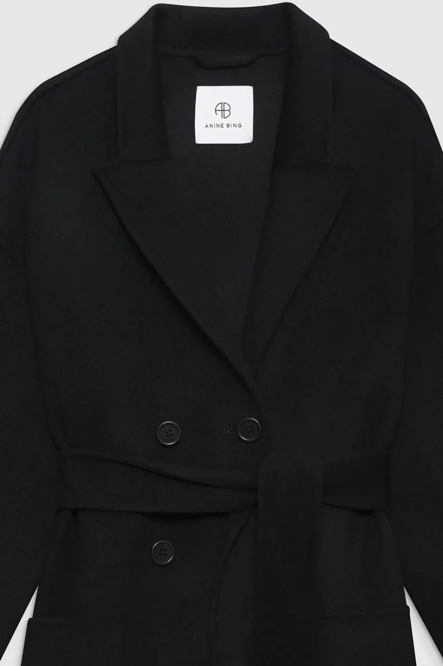 The Dylan Coat is cut for a relaxed and oversized fit. It includes a removable self-tie belt that can be wrapped tightly for a close, snug fit through the waist.