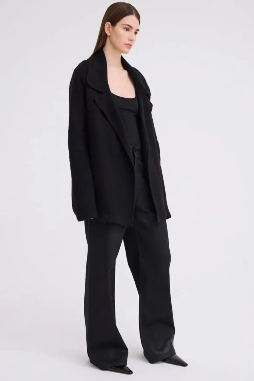 An elegant outerwear piece that blends soft tailored details with a sculptural yet unstructured shape. Our Fenway wool knit jacket showcases a relaxed fit throughout body with slightly dropped shoulder seams and full length sleeves for easy layering all year round.
