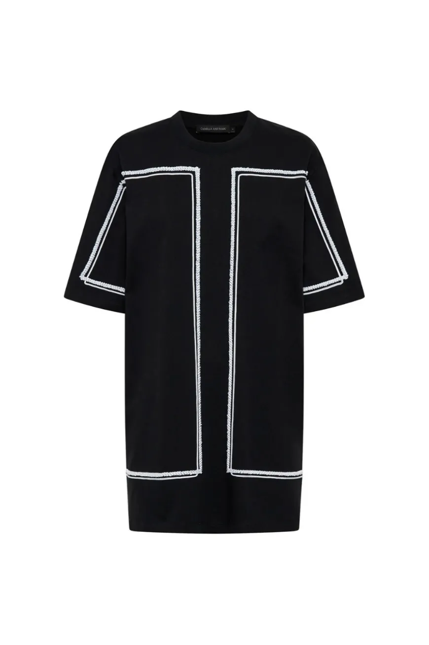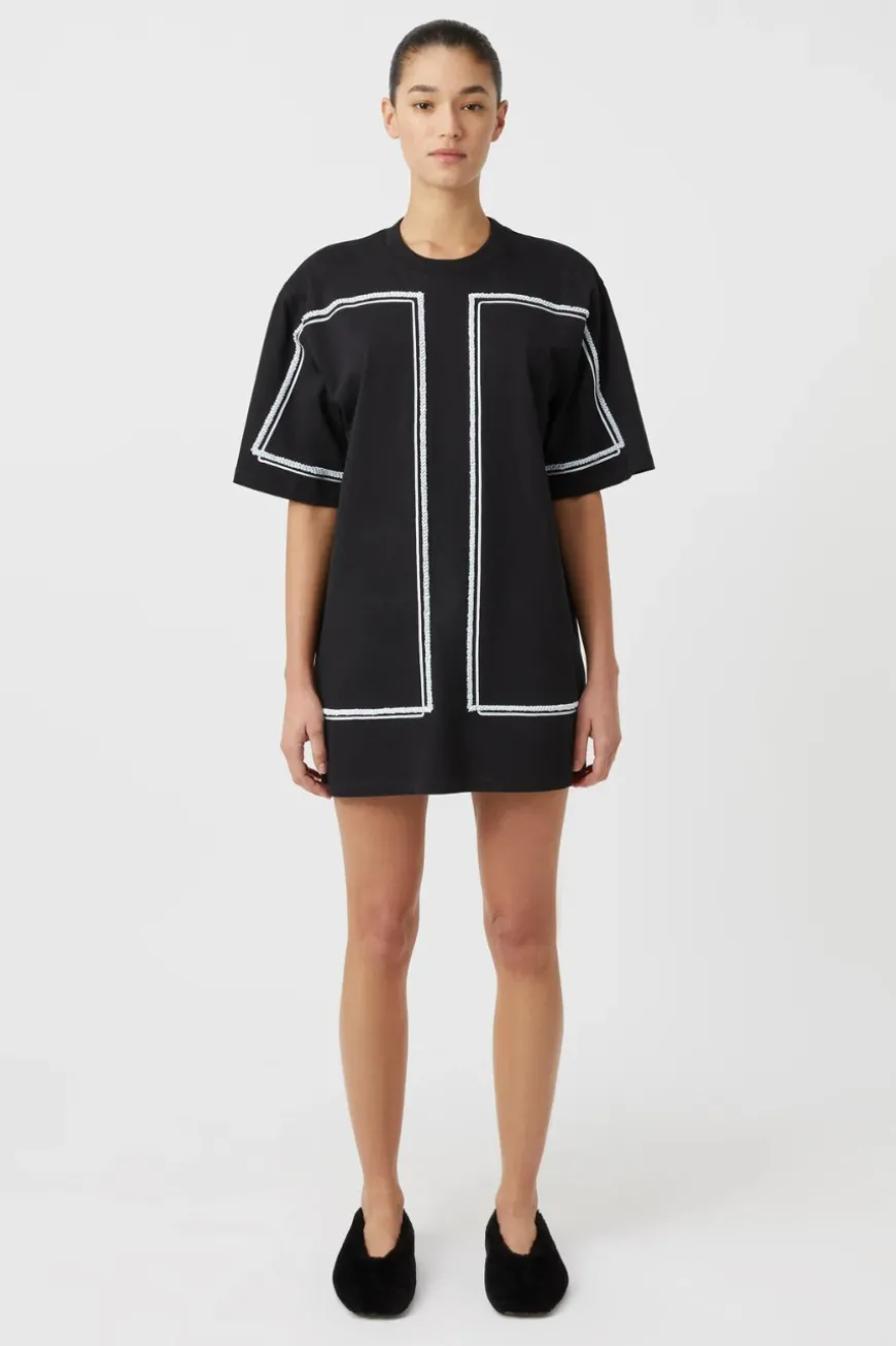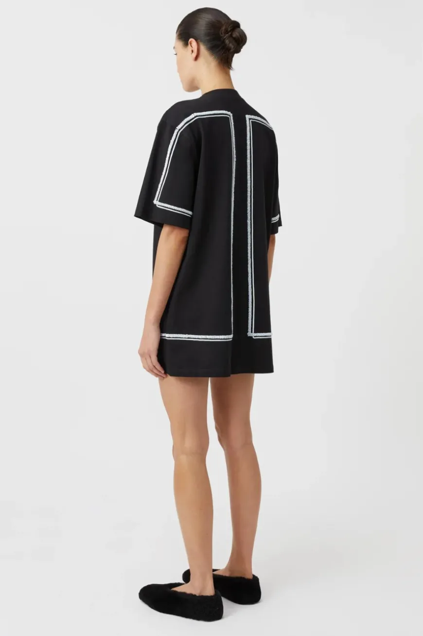 The Fortuna Mini Tee Dress exudes casual charm with its lightweight cotton fabric and intricate Cornellli embroidery detail. Designed for comfort and style, it features a double folded rib neck bind that adds a subtle touch of structure to its relaxed silhouette. Perfect for effortless everyday wear.