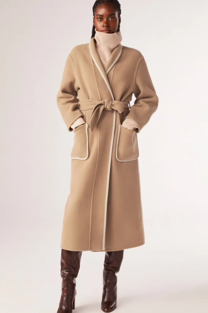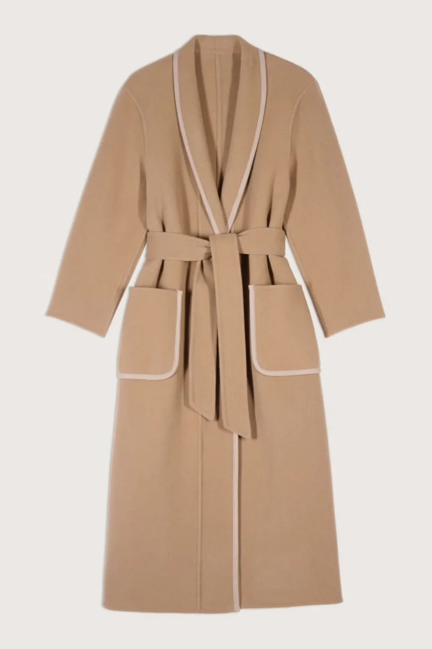 The amazing GOTCHA coat is sophisticated, elegant and chic. It has drop armholes and a shawl neck, and is so soft and comfortable that it’s wonderful to wear. This is a long straight style with a belt fastening at the waist which you can adjust to fit perfectly. We also love the contrasting embroidered trims which are intricate and feminine. Wear with any mid-season or winter look for a chic and discreet vibe.