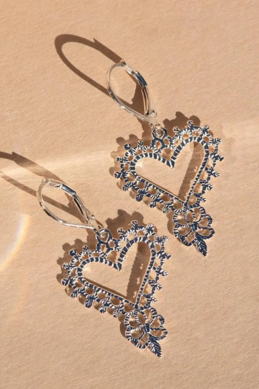 The beauty and allure of Spanish lands are woven through these intricate heart earrings.