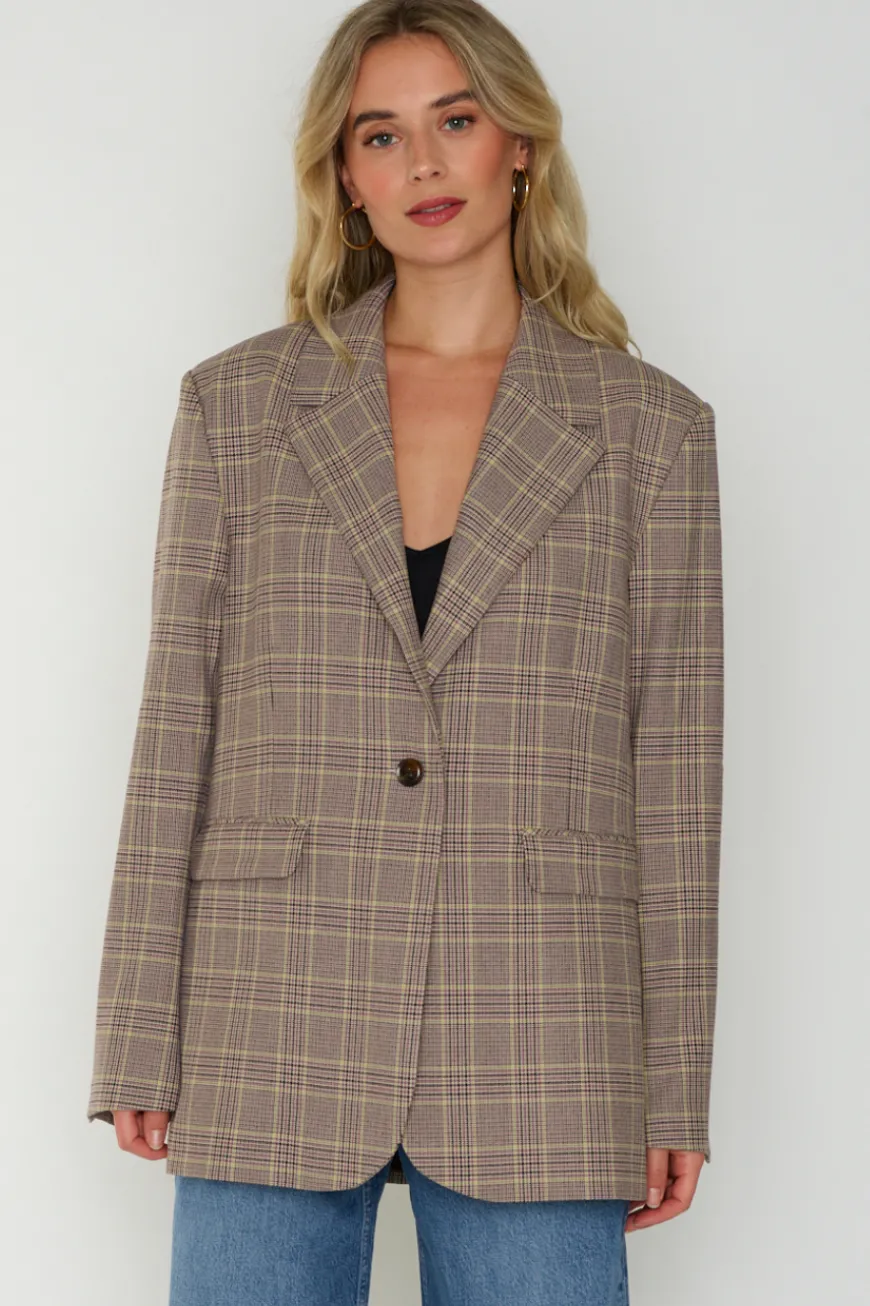 Blazer with an oversized fit. Single-breasted button closure on the front. Flap pockets on the front and pocket on the inside. Notched lapels and shoulder pads. Main material made from an elastic LENZING™ ECOVERO™ viscose-blend.