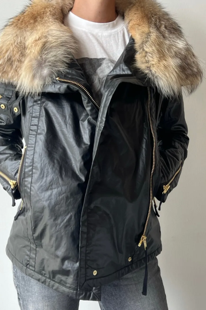 The Helen Jacket is a refined take on all-season outerwear, seamlessly blending warmth with practicality. Crafted from premium cotton twill treated with three layers of polyurethane resins, it is wind-resistant, water-repellent, and effortless to maintain. The fabric is tumbled to enhance its naturally distressed texture, designed to soften and develop character over time. Insulated with Thermolite padding, it ensures warmth without bulk, while a detachable coyote fur collar offers versatility. Thoughtfully finished with three pockets, an off-center front zip, and a snap placket closure, this jacket is the epitome of understated elegance and utility.