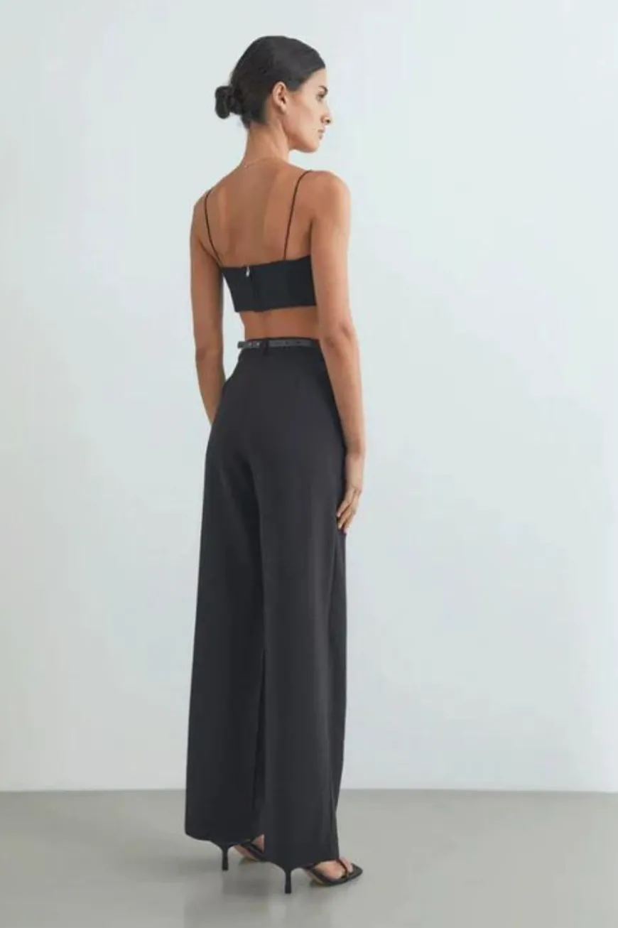 An elevated classic, the Idol Pant is crafted in a soft rayon blend fabrication in elegant black. Falling to a full length and wide leg silhouette, this style features front tucks and functional angled side pockets, pairing perfectly with Vu0026amp;W basics and shirting for effortless styling.