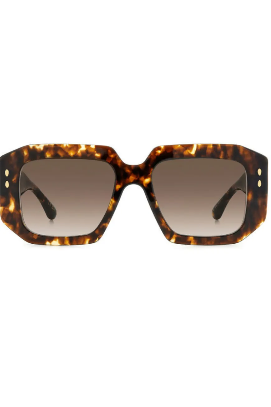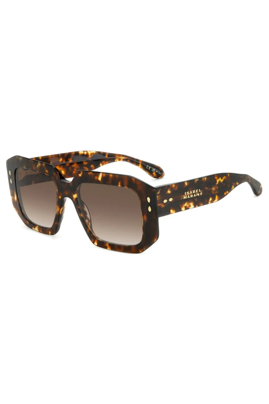 Bold, quirky and effortlessly lightweight: Isabel Marant’s New eyewear collection flaunts a selection of statement ultra-flat frames in a range of trendy yet versatile colourways. Crafted from acetate with metal temple cores and lasered logo hinges, these sunglasses are distinguished by a narrow geometric profile. Elevated with shaped temple tips and metal rivets in tribute to the brand’s signature leaf detail.