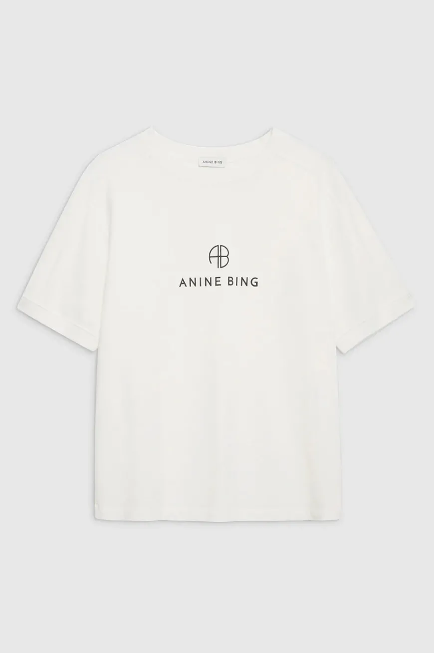 The Jaylin Tee Monogram is a branded essential made from heavyweight cotton jersey in ivory. Its retro-inspired silhouette features raglan sleeves with flatlock stitch detailing and a ribbed cuff. Finished with an ANINE BING logo graphic in contrast black screen printed on the front.