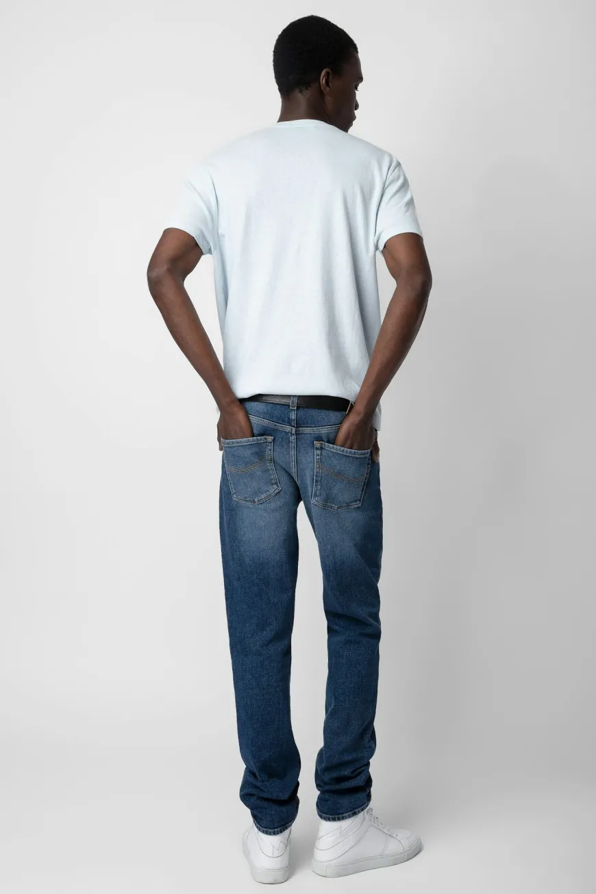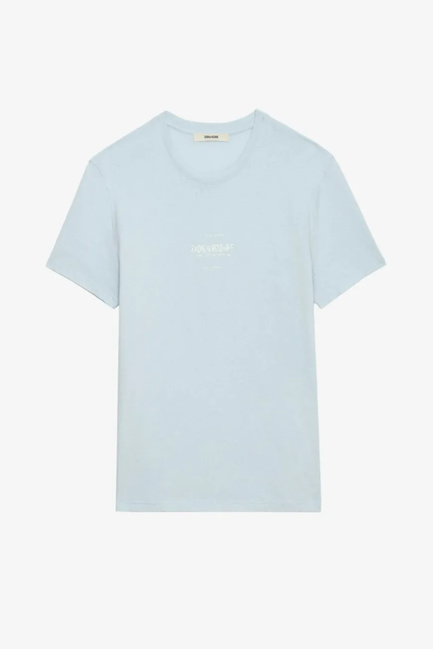 Mens washed linen blend T-shirt with Studio Homme crest print and short sleeves.