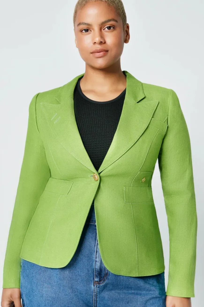 This blazer is quintessentially SMYTHE: refined and perfectly tailored. This timeless classic has been a SMYTHE staple since 2011. Perfectly tailored and one of our top selling silhouettes, this single breasted blazer features a “cheeky” cut out back vent and brass hardware.