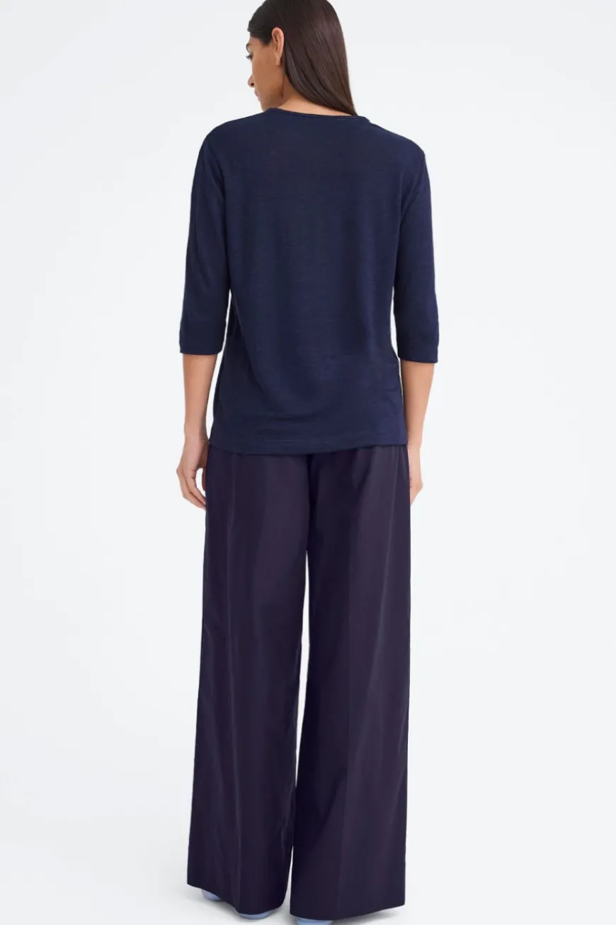 Endlessly versatile, this three-quarter sleeve t-shirt is cut for a flattering, relaxed fit. Made from slubbed mid weight linen jersey, this style has a ribbed neckline and cuff with a straight hemline. Whether worn alone or as a layering piece under your favourite knits, this piece will carry you through the seasons with ease.