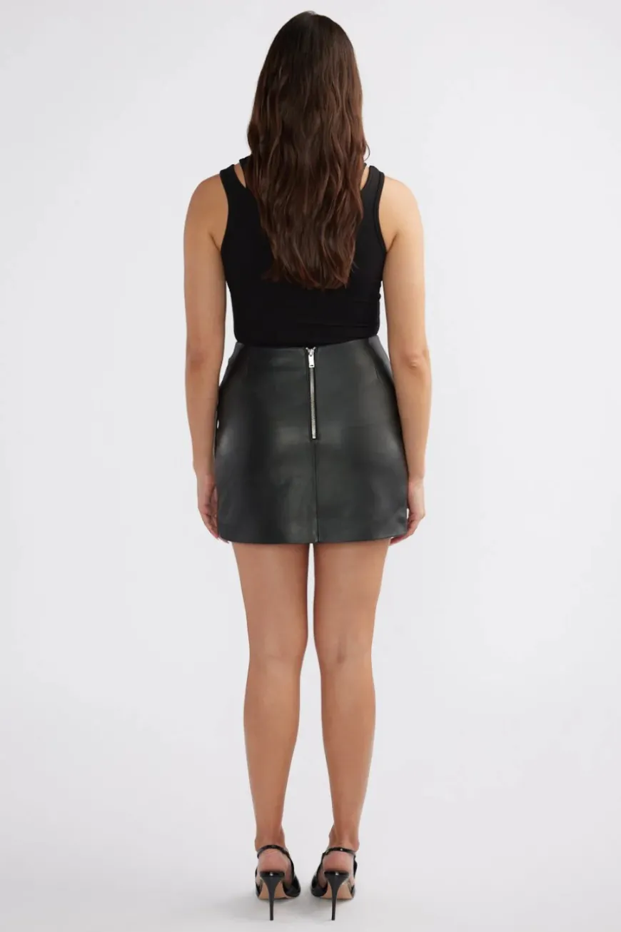 Introducing the Melissa Leather Skirt, made from signature Ena Pelly buttery soft leather. Designed with a mock wrap overlay, it is a mini in length with a leather tie.