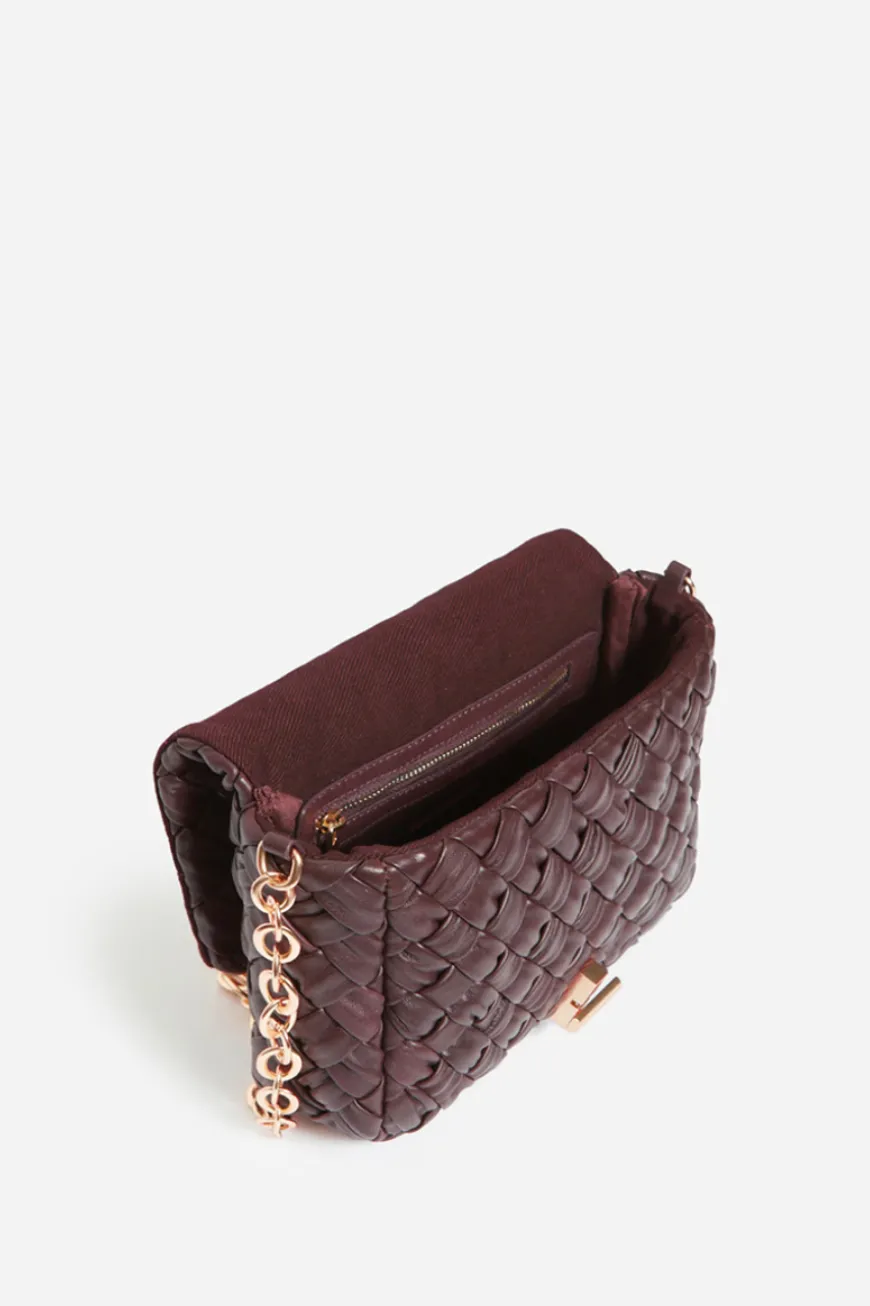 Large braided Moon bag in brown woven leather.
