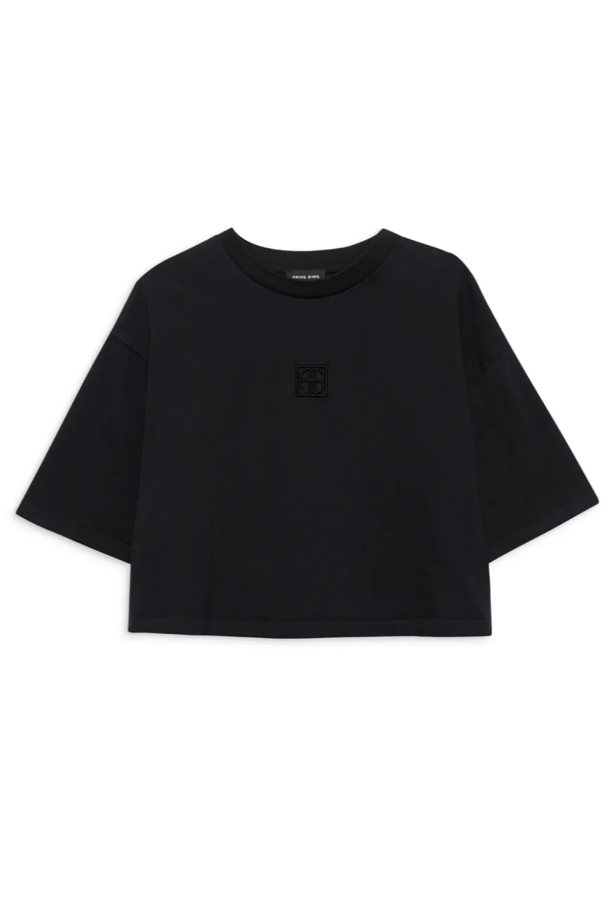 The understated Anine Bing logo adds a touch of sophistication to this relaxed cropped tee. Perfect for elevating your casual wardrobe with effortless style.