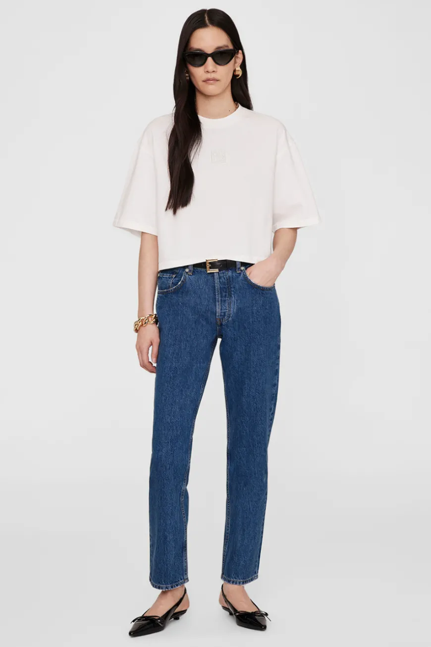Cropped tee with anine bing logo.