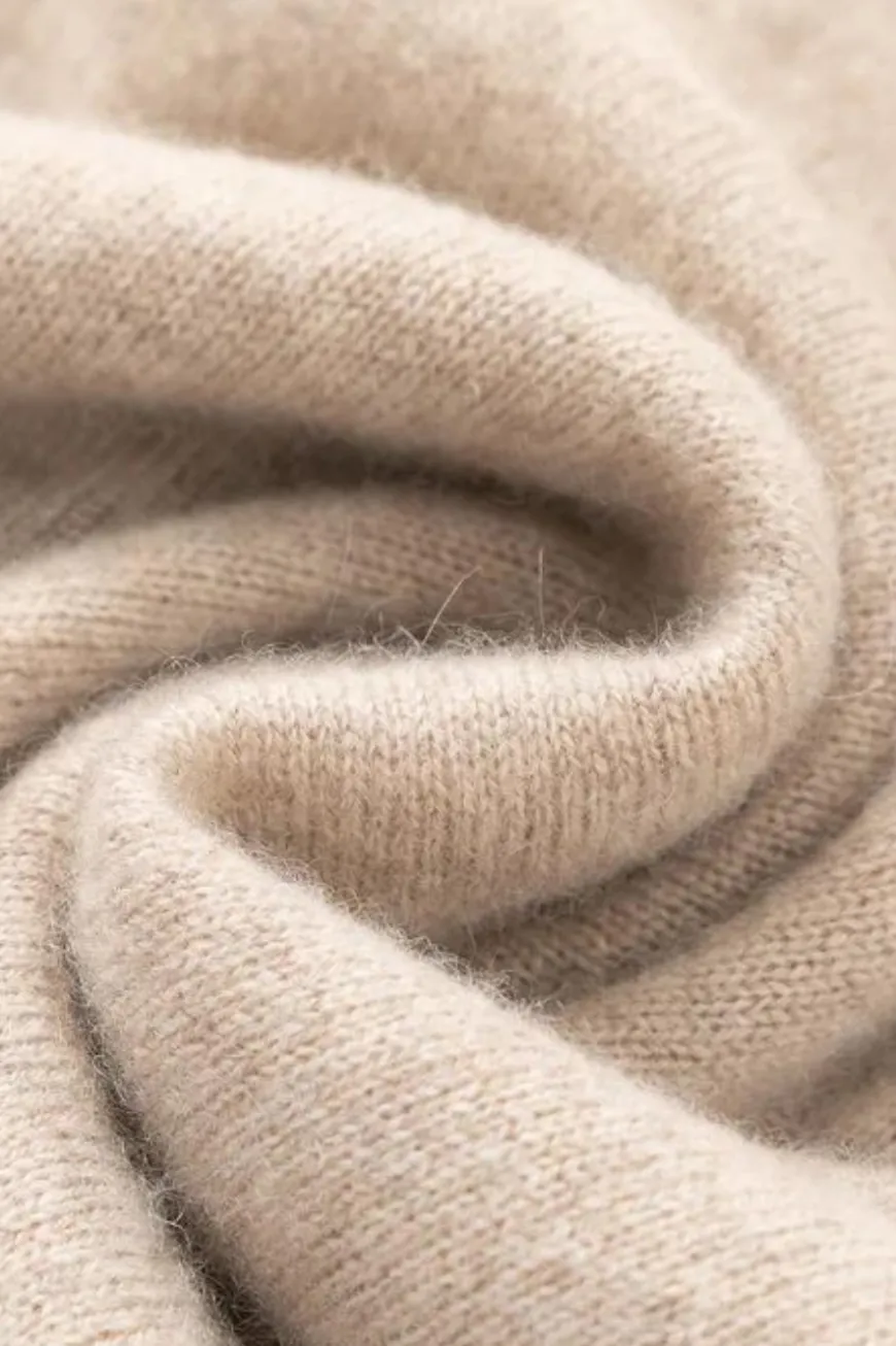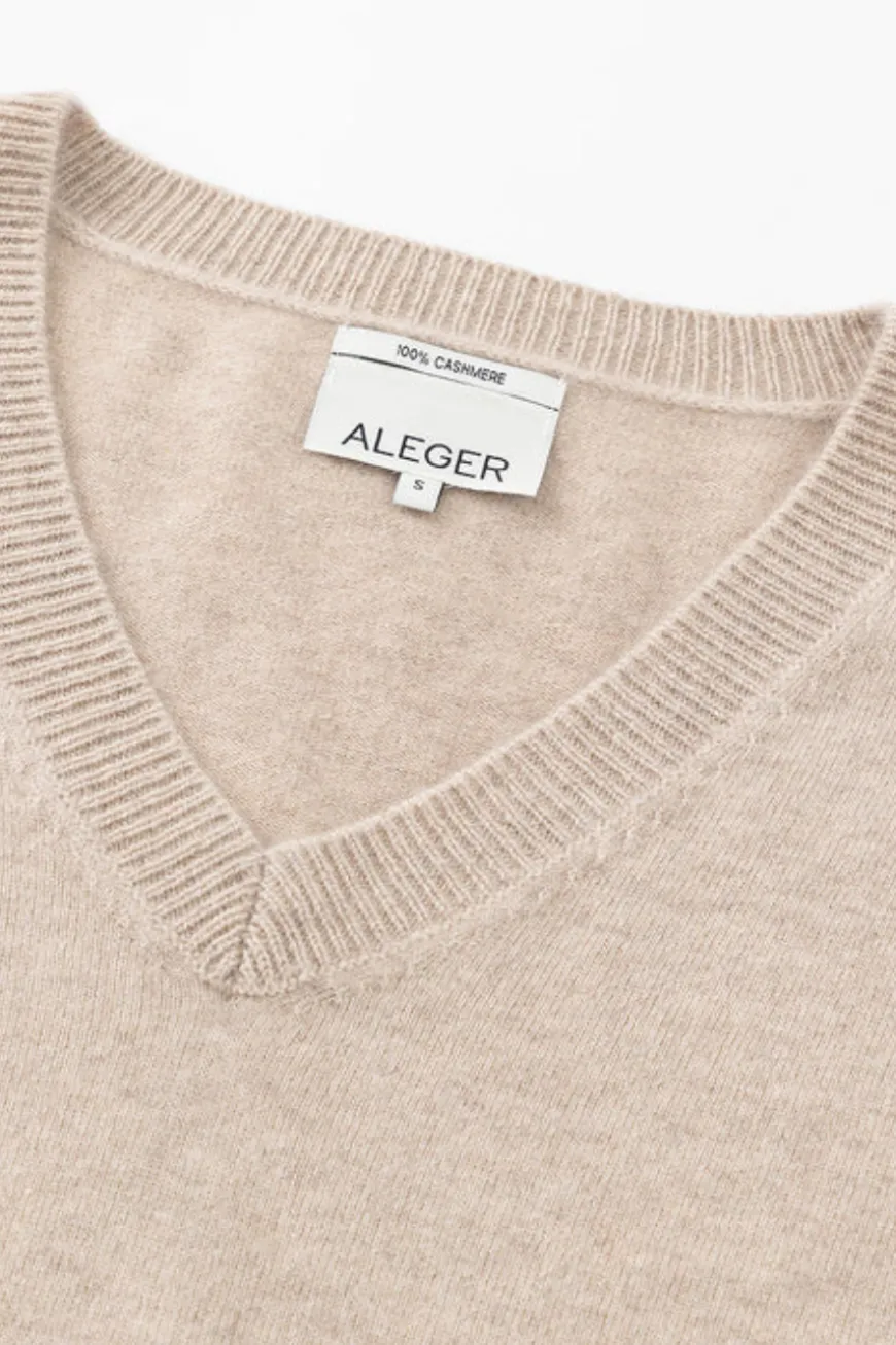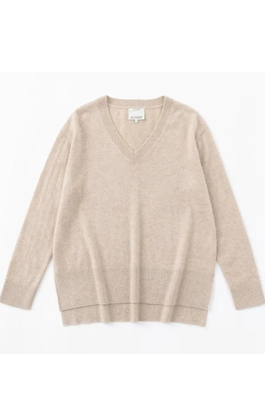 Long-line oversized V-Neck in superior ultra-soft cashmere with contrast thickness ribbed neck trim.