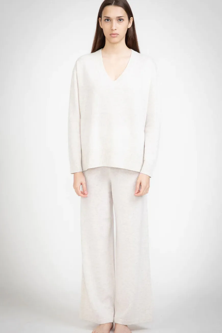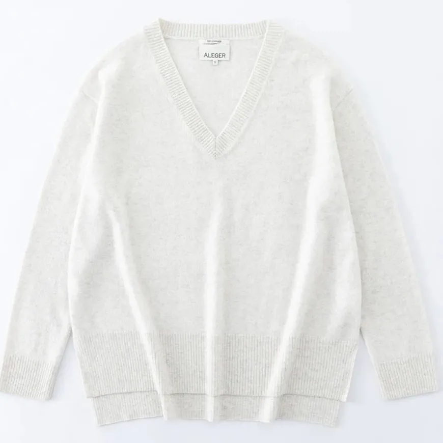 Long-line oversized V-Neck in superior ultra-soft cashmere with contrast thickness ribbed neck trim.