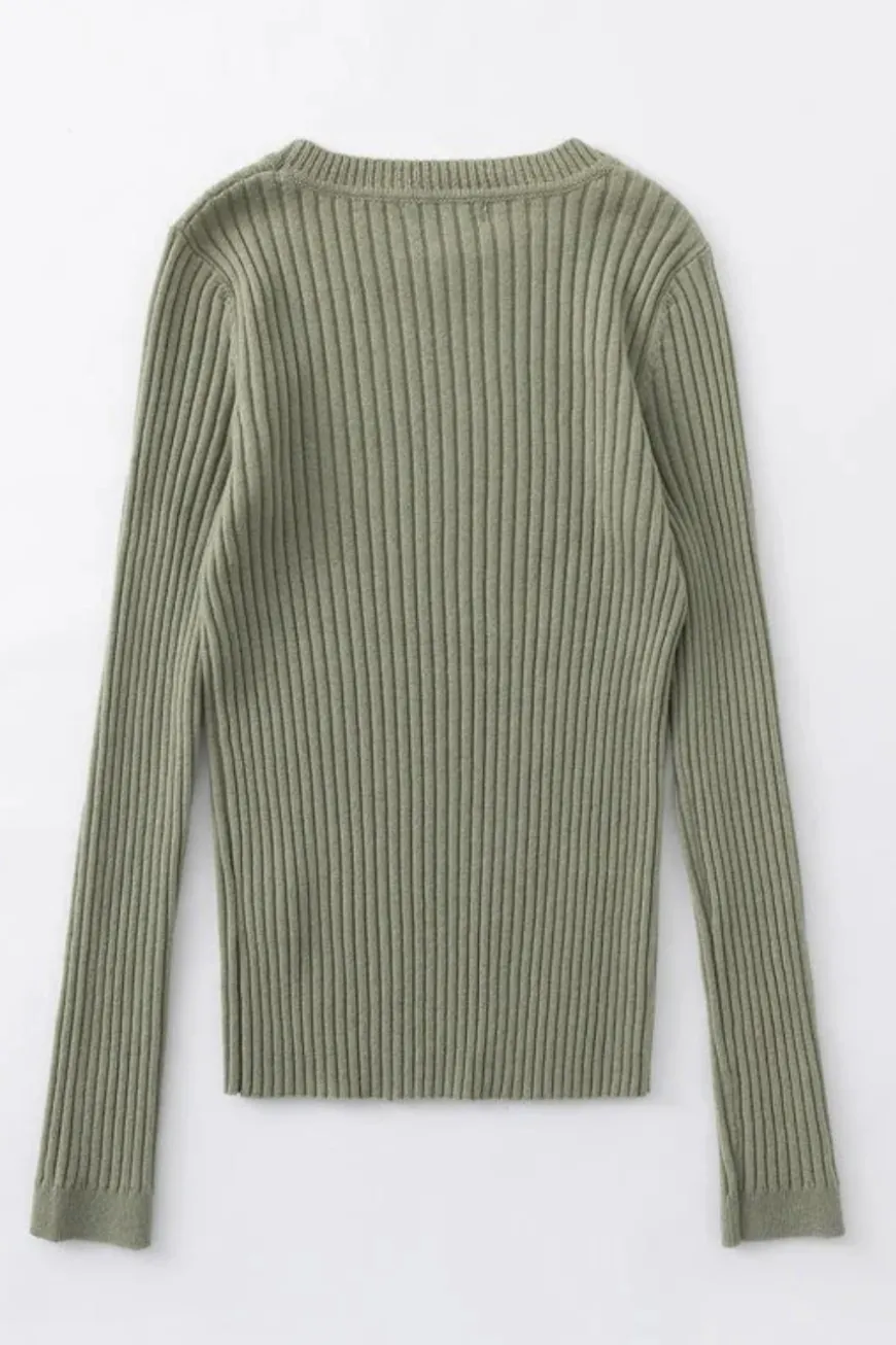 Skinny ribbed long sleeve crew neck top with keyhole detail at back neck in a fine cashmere