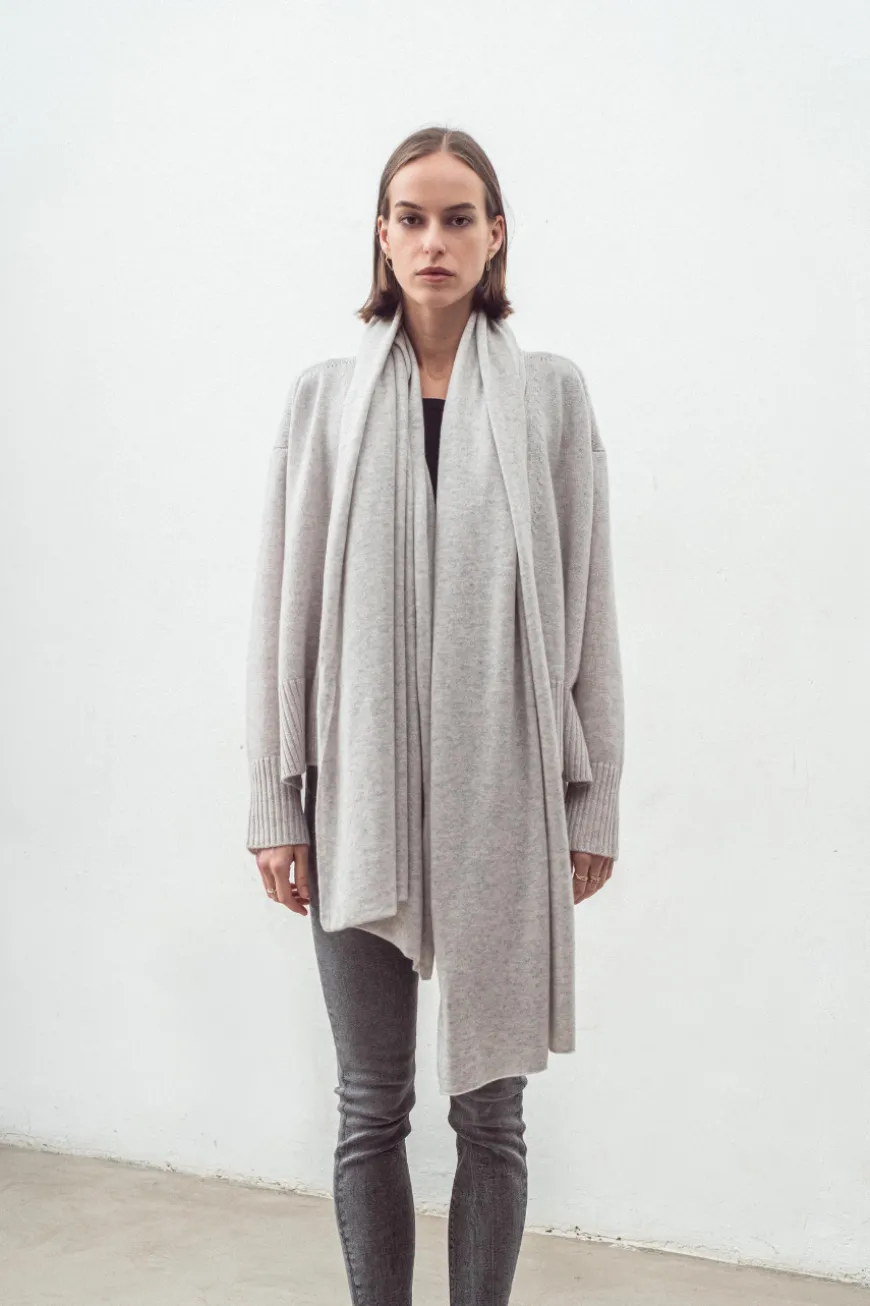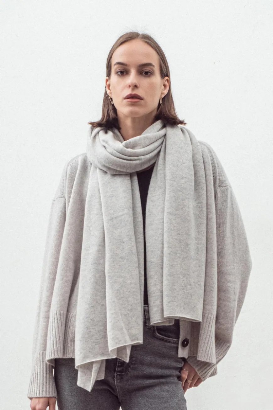 The luxuriously large cashmere travel wrap can be styled to create a range of statement looks
