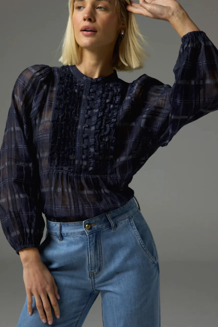 - Full-length blouson sleeves