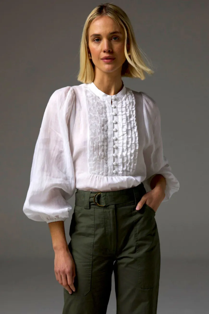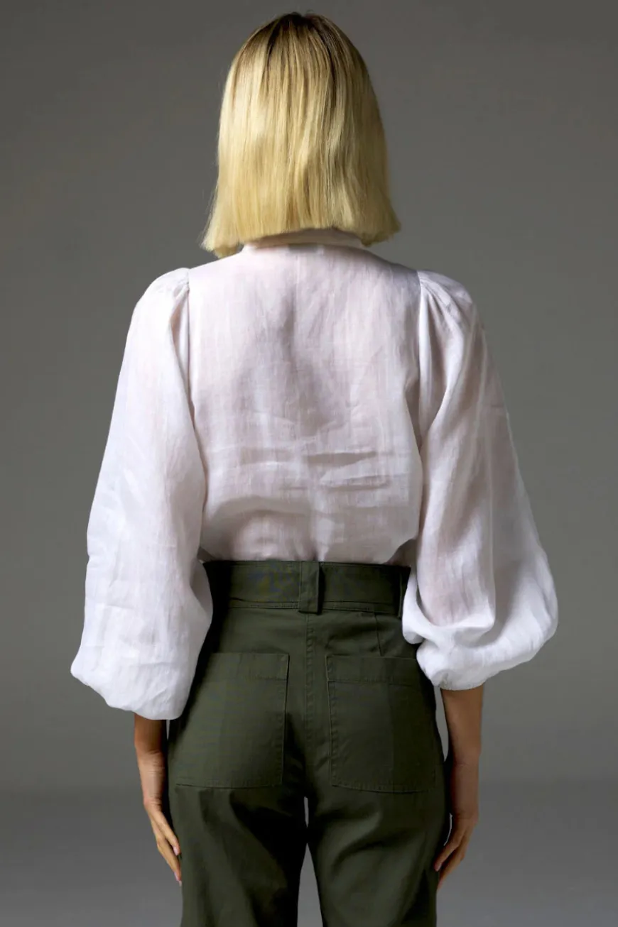 Designed in lightweight ramie, this top bridges vintage aesthetics with contemporary elegance. A stunning and statement style.