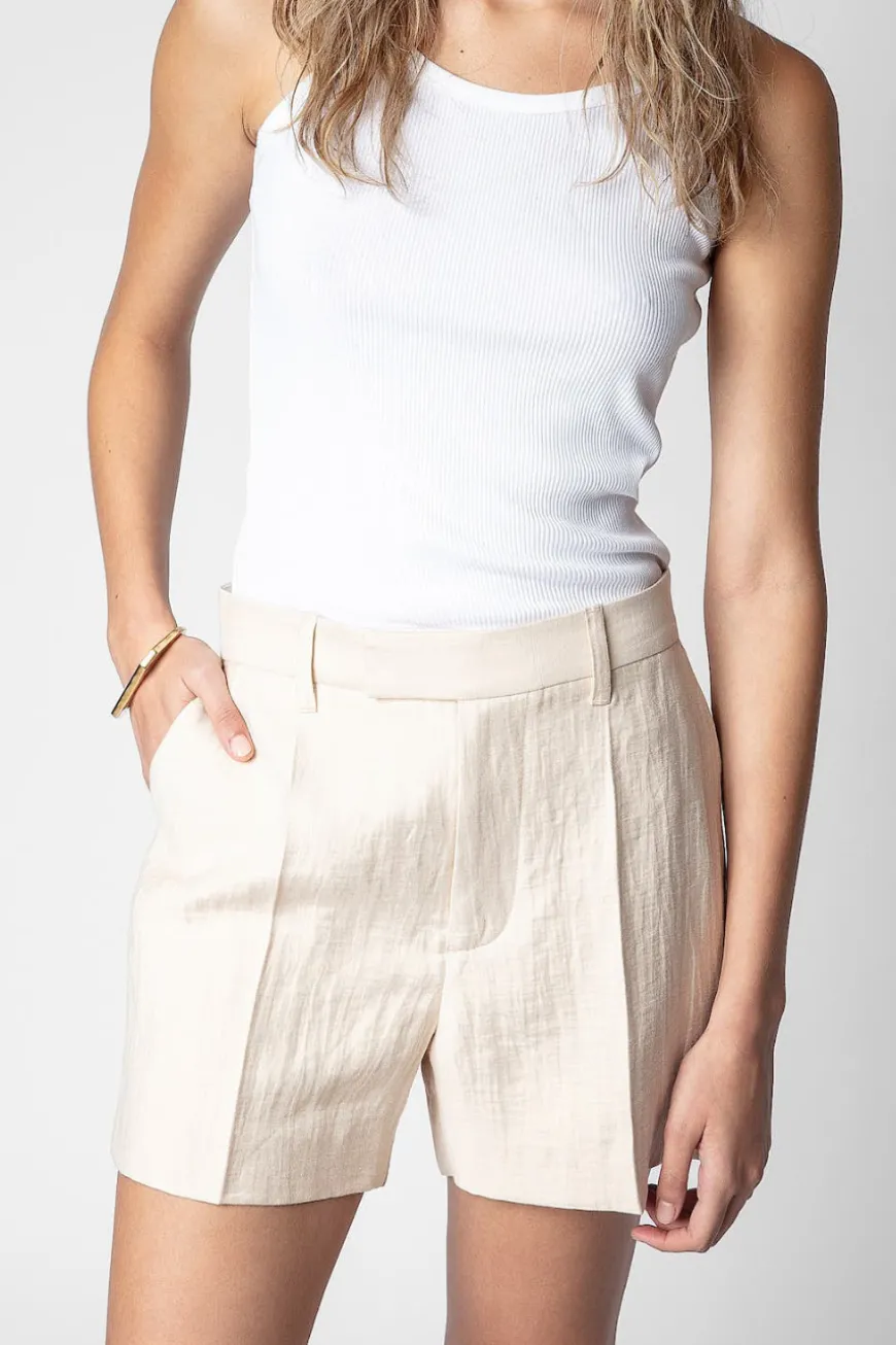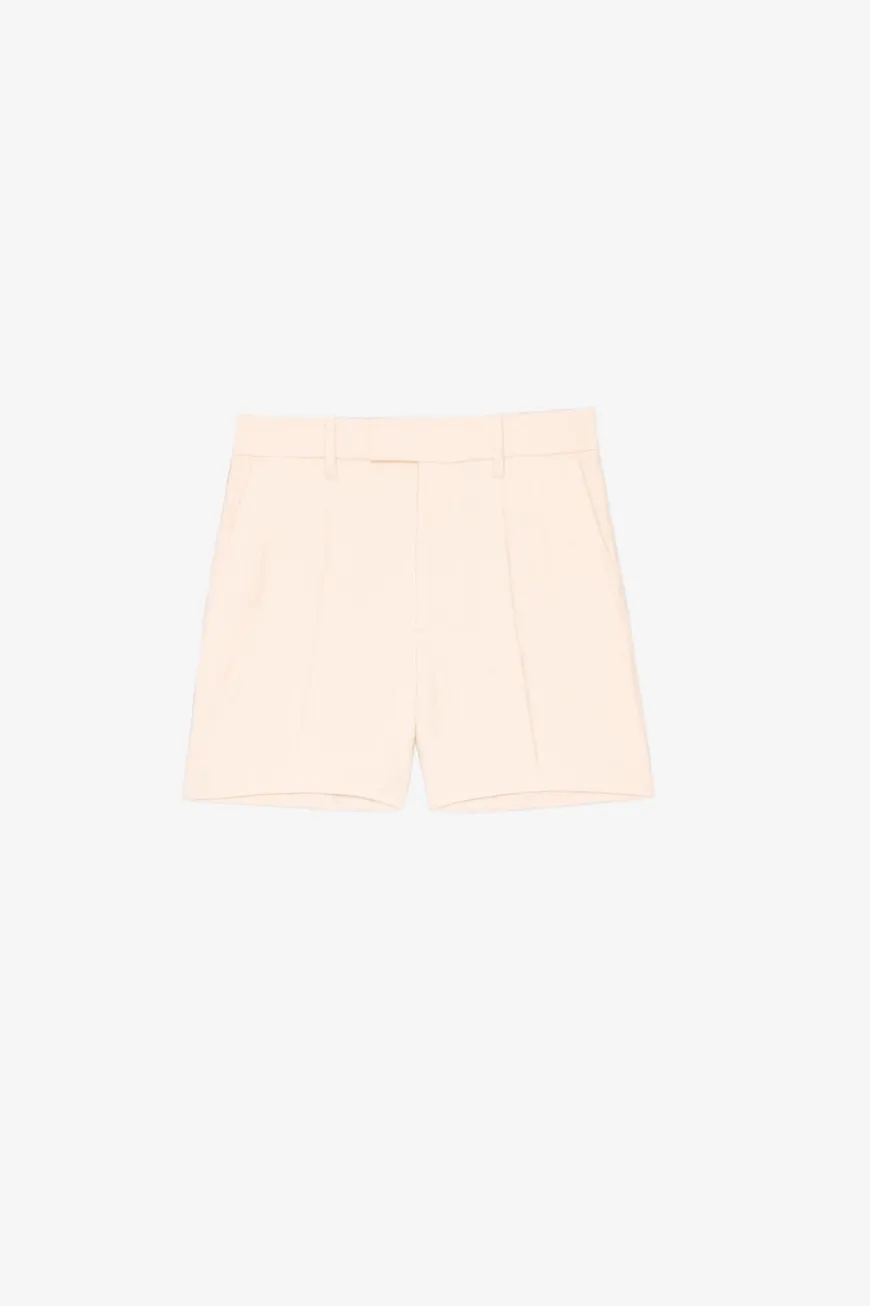 These pleated shorts feature two buttoned, piped seat pockets, for a chic, defined look.