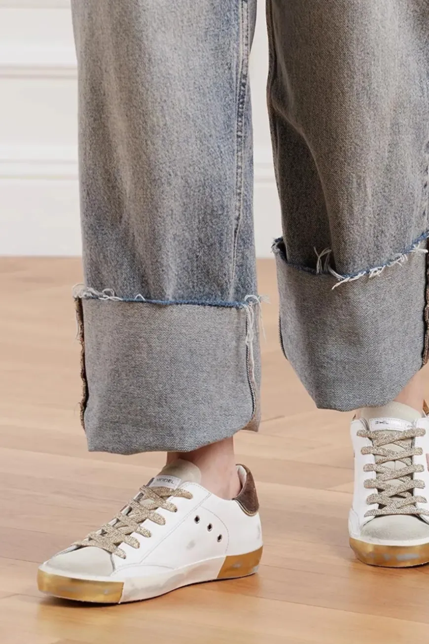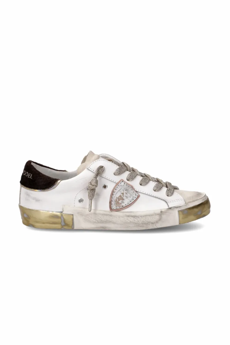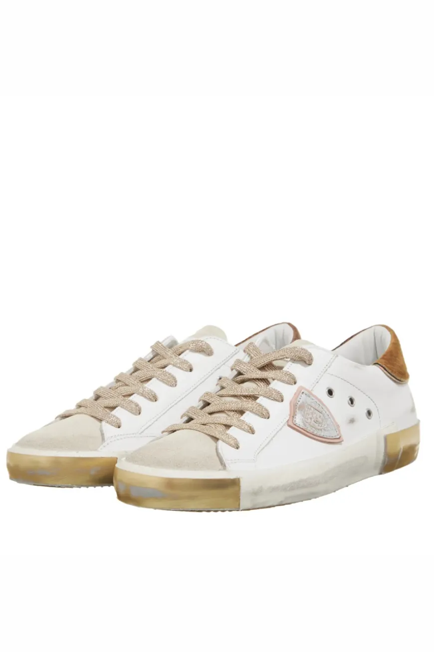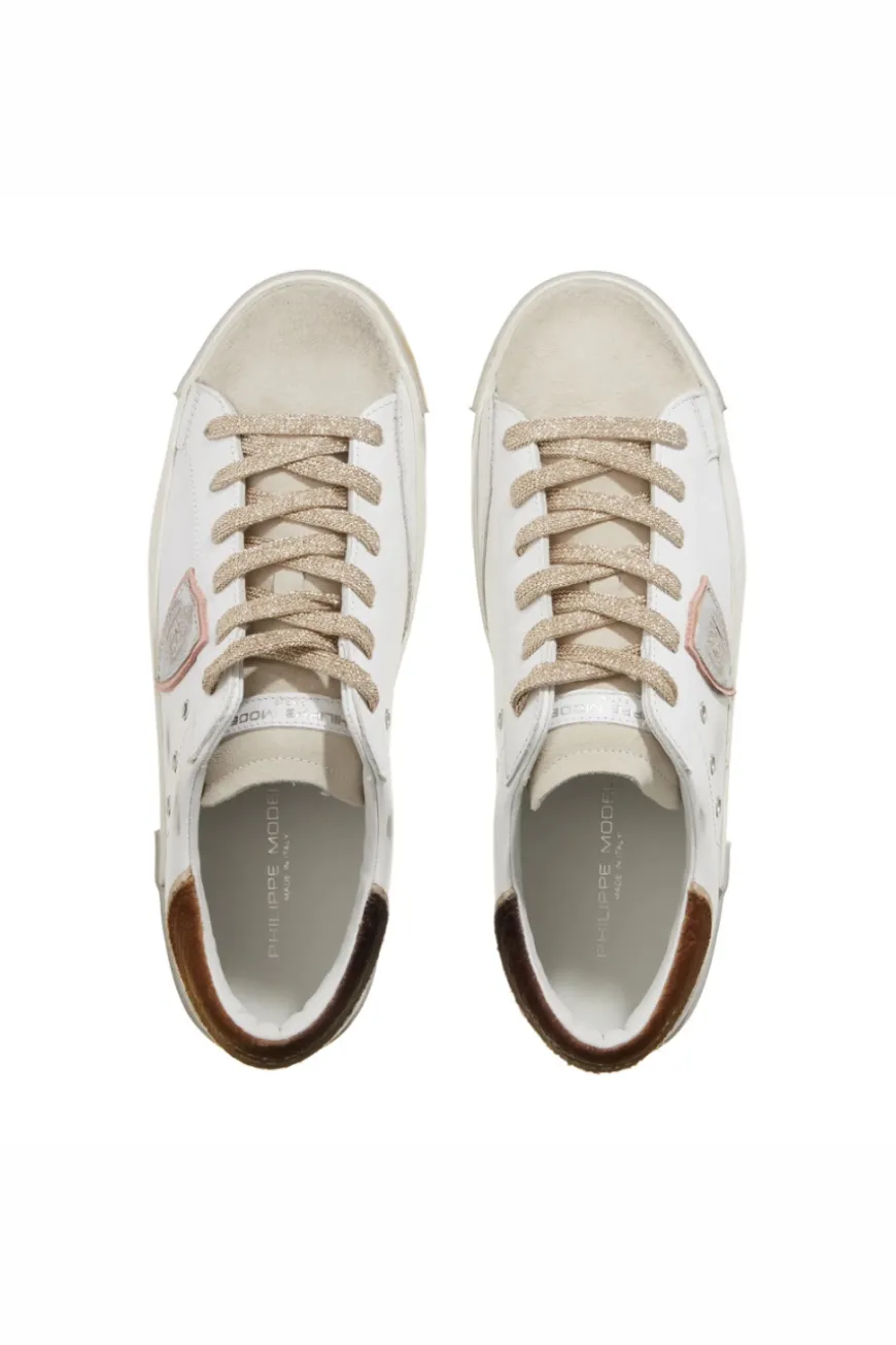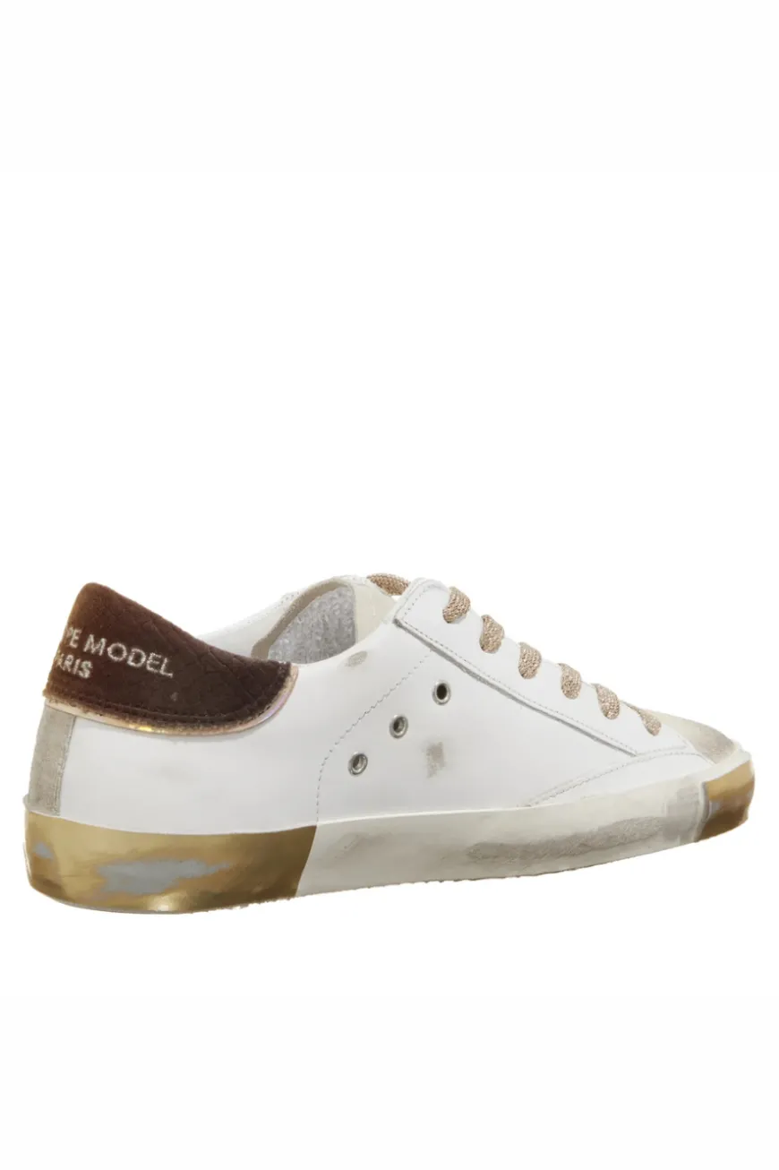 - Upper consisting of coated leather in white and gold color with smooth finish, suede finish, a vintage look and synthetic material detailing