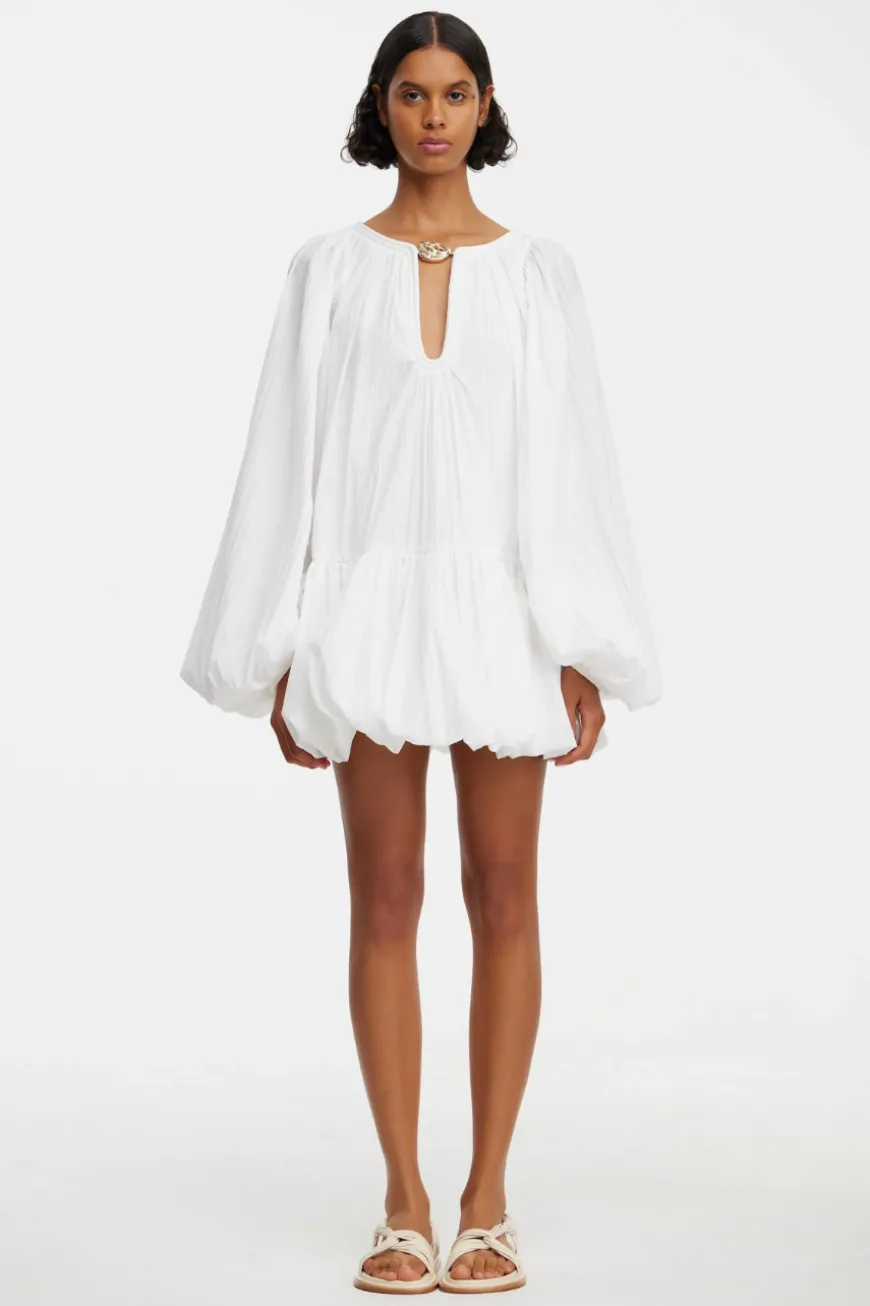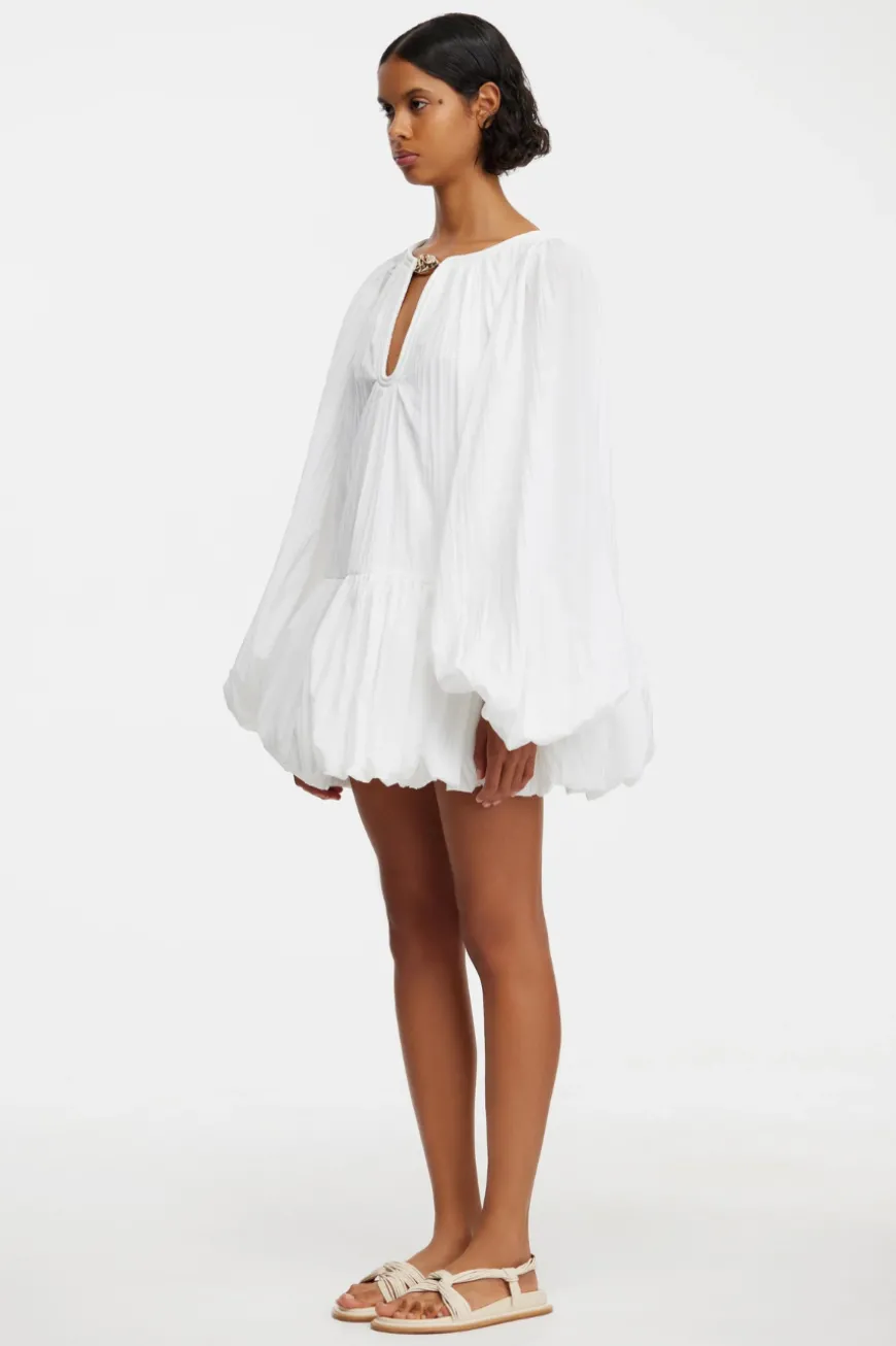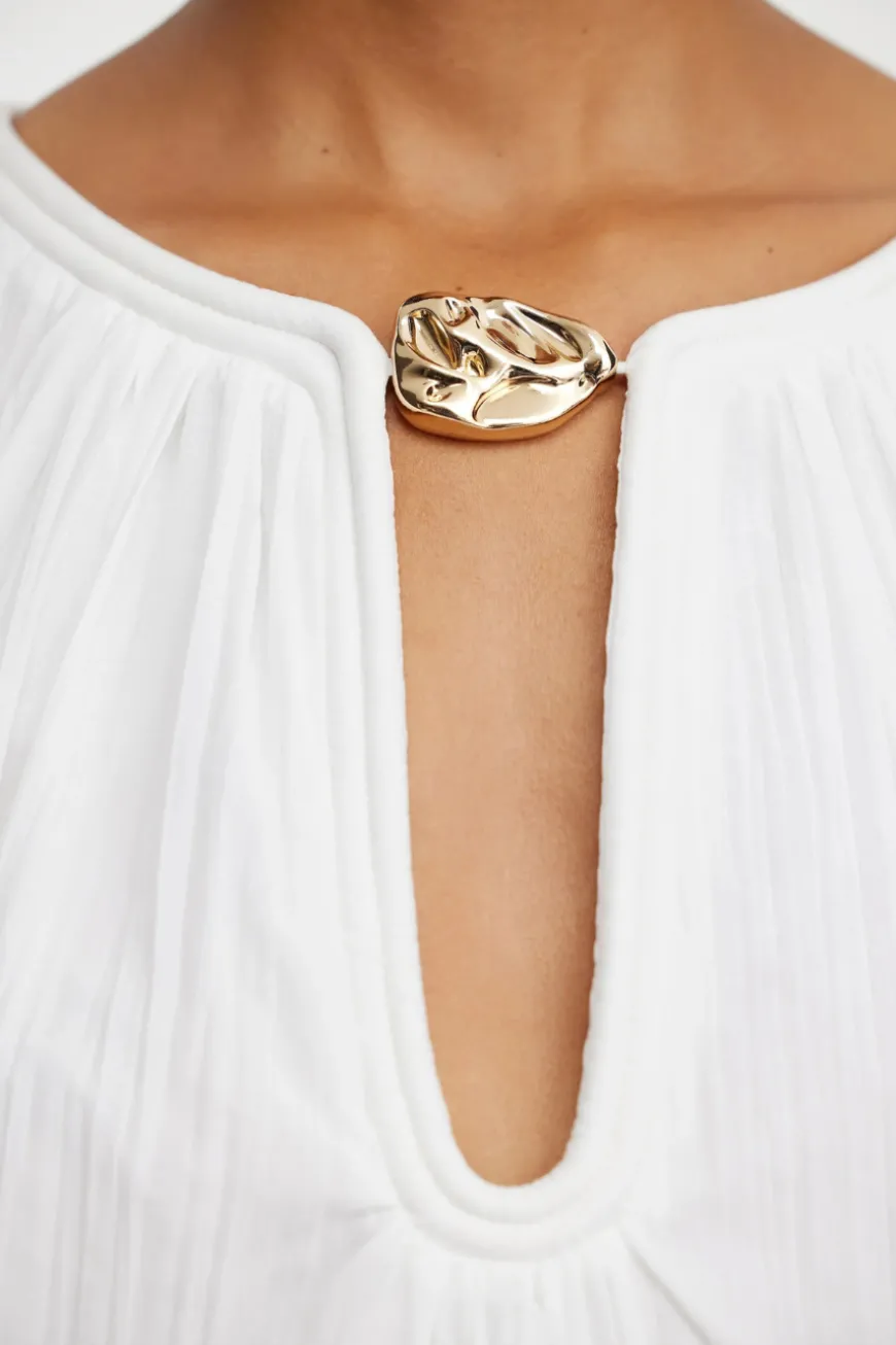 Introducing the Radmoor Mini Dress in Ivory, a charming tiered dress crafted from crinkle fabric for a textured and airy look. Designed with a relaxed fit, this mini dress features gathered tiers that add playful movement and hidden side seam pockets for convenience. A deep front neckline is accented with gold hardware for a touch of elegance, while the dress is fully lined for a comfortable wear.
