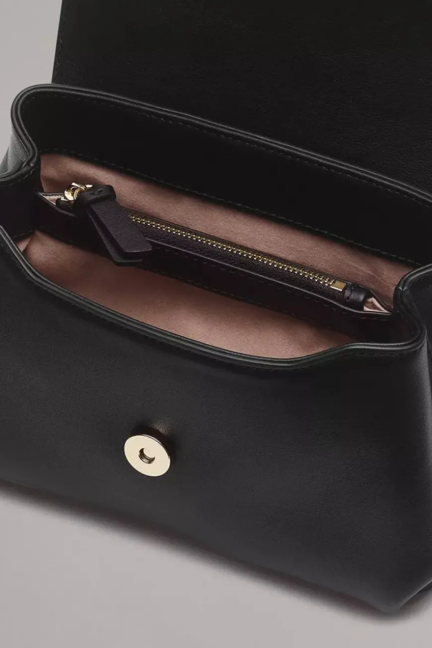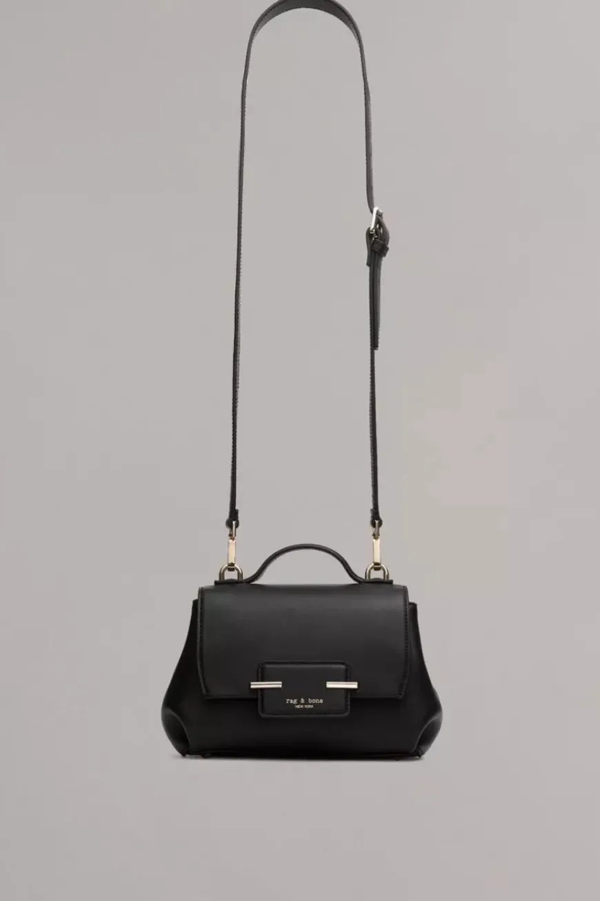 A delightful, compact version of the quintessential flap bag. Crafted from smooth Italian-milled leather, this petite, structured style is punctuated by sleek metal bars and contrast edge paint. The top handle and adjustable strap allow you to carry it by hand or over your shoulder, while the back patch pocket offers quick access to cards.