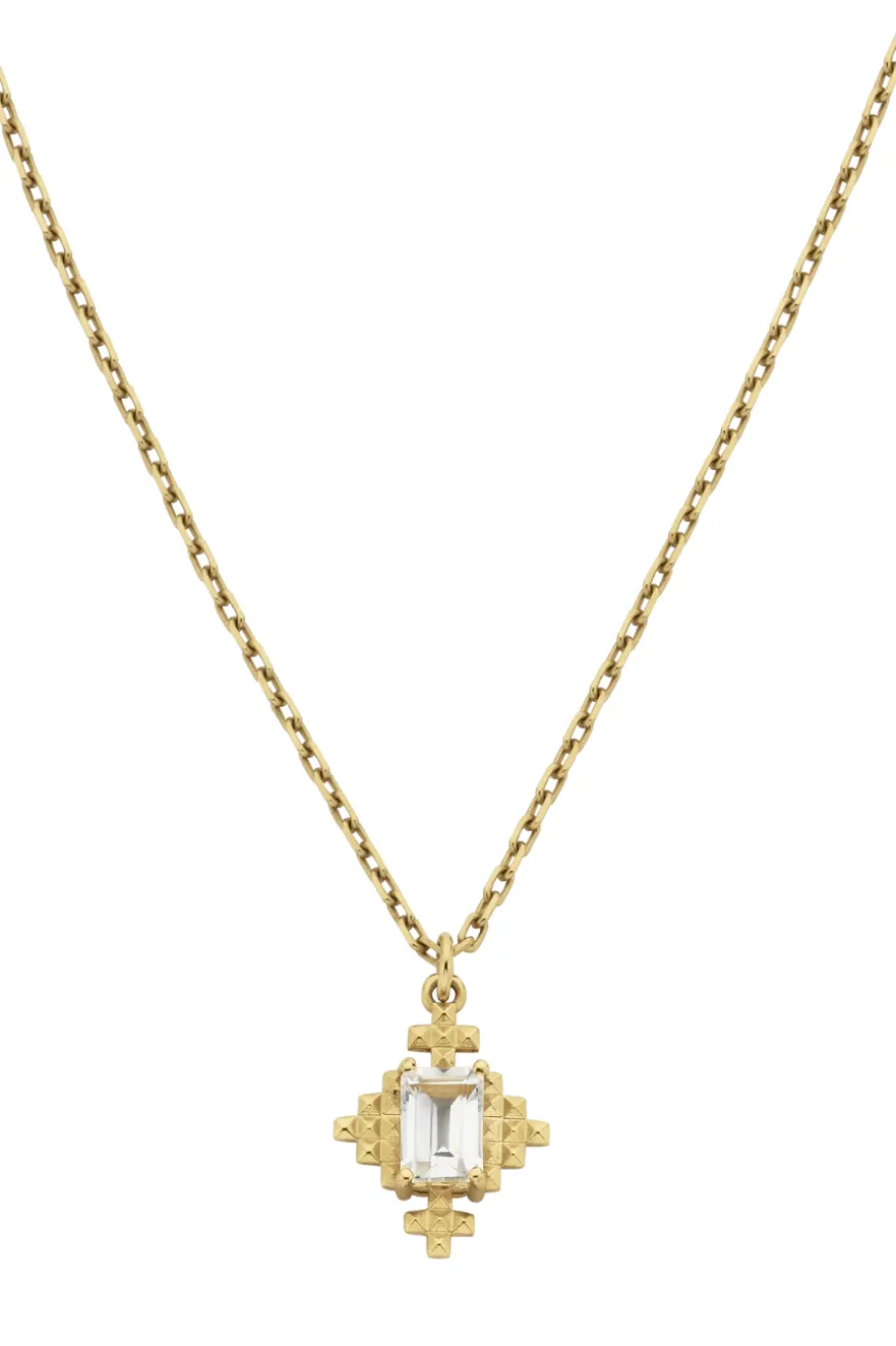 Reya features a beautiful baguette-cut White Topaz, gracefully suspended from a textured chain that moves gently with every step.