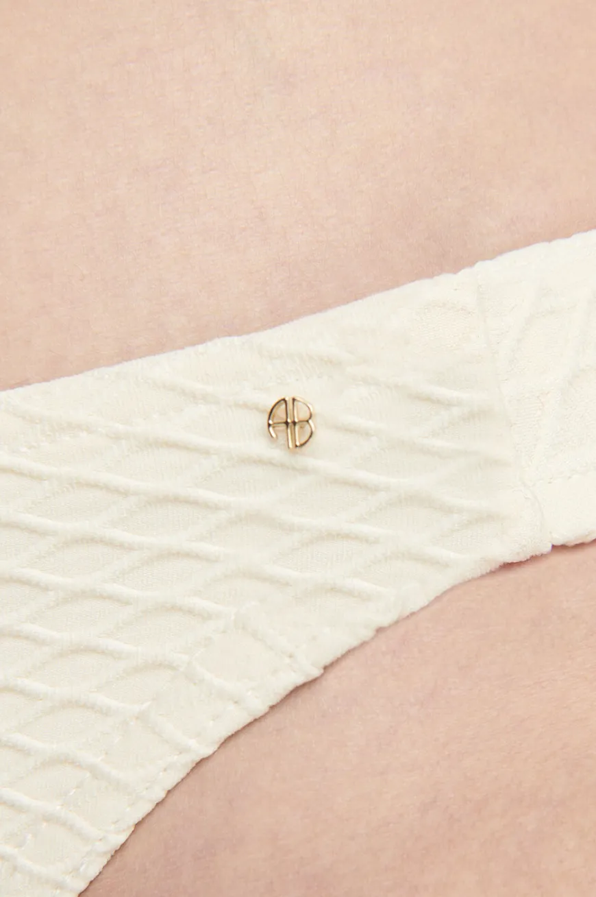 The Riza Bikini Bottom is a classic swim separate constructed from fully-lined recycled polyester elevated with honeycomb-inspired surface texture. Pair it with the coordinating Rosa Bikini Top to complete the look.