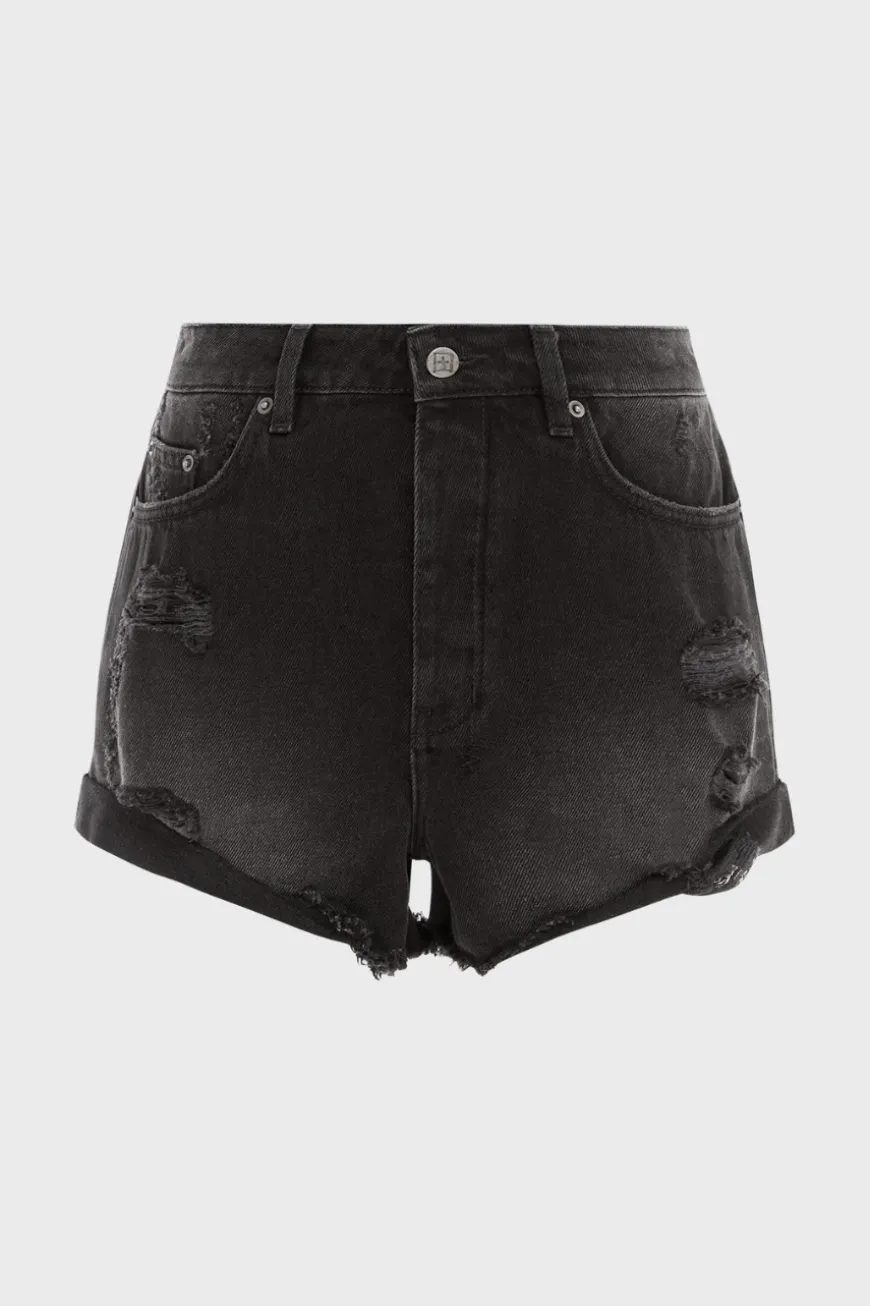 The Rollin Out Short Trashed is a mid rise, relaxed thigh grazing short with branded hardware, Ksubi t-box print and back cross embroidery. This style is designed with a raw-cut hem that has been rolled and tacked, which can also be unrolled to allow for more length. Constructed from premium lightweight European rigid denim in a vintage black colourway wash with heavy distressing and deconstruction, this short features branded hardware, Ksubi t-box print and back cross embroidery.
